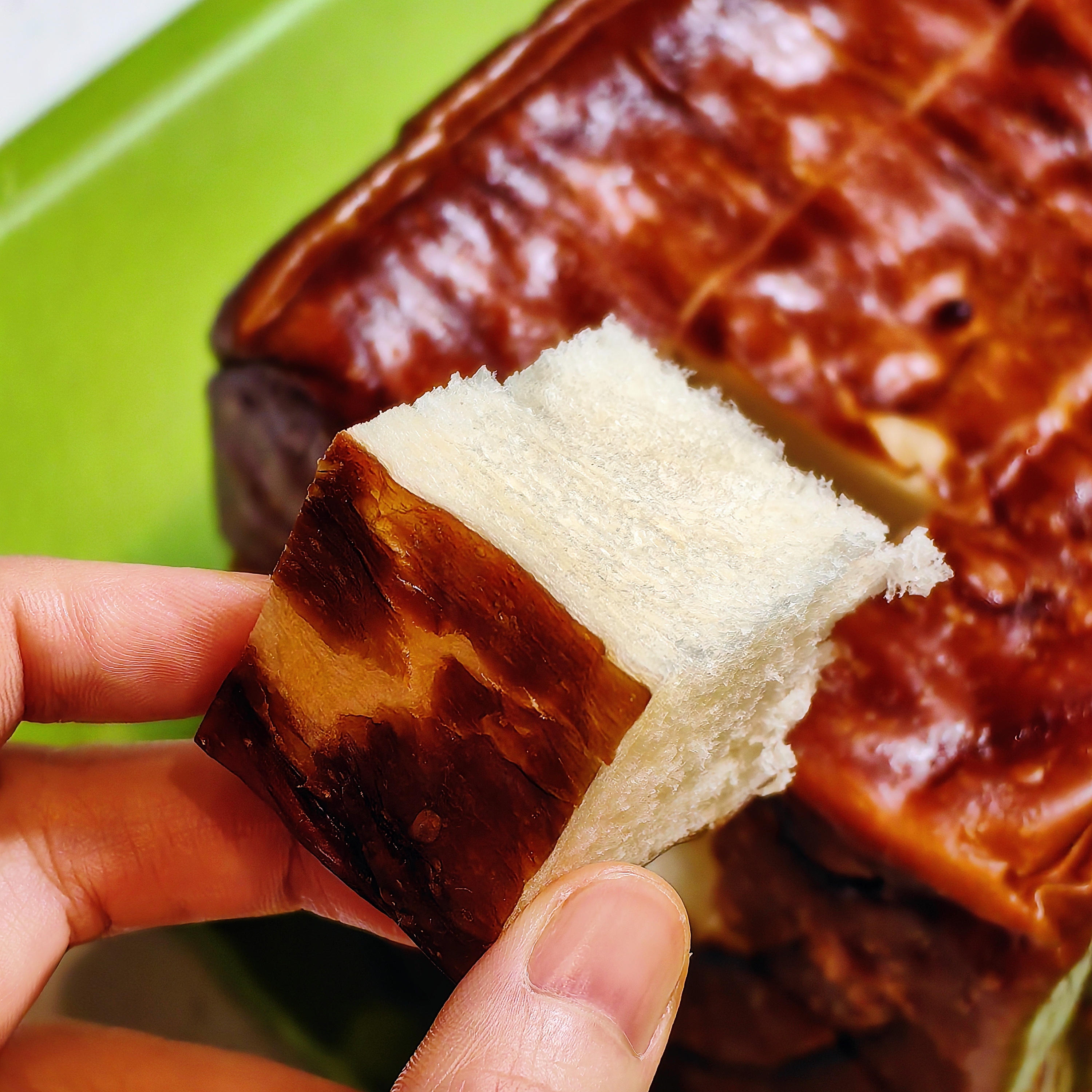 大家收到后,如果一下子吃不完,可以切片后放入冷冻,吃前提前拿一两片解冻就好,如果能适当复热,就更能还原新鲜口感,外酥内软、香气四溢!碱水的焦香与牛奶的柔软融合得恰到好处,可以撕着吃,非常满足,如果再夹上自己蔬果、肉肉或奶酪,更是一绝哦!