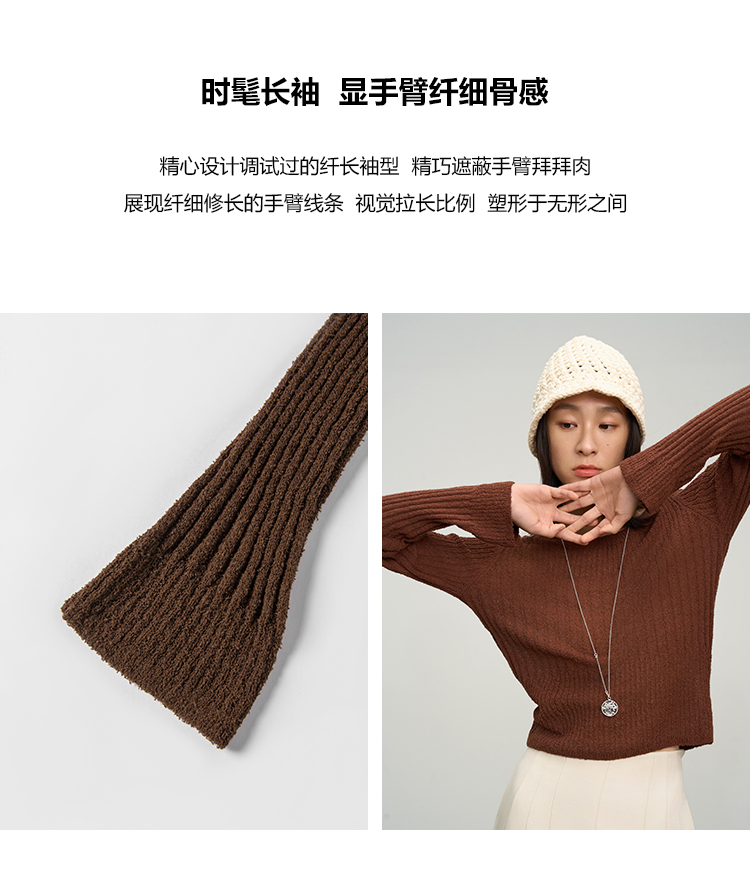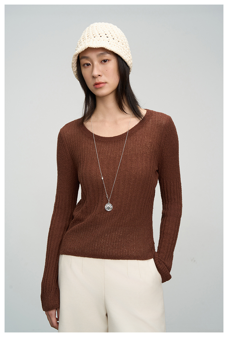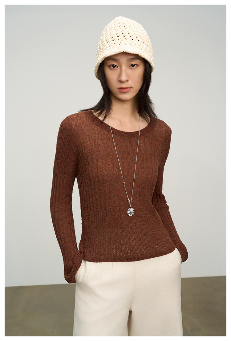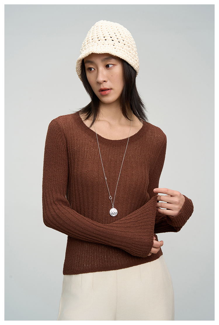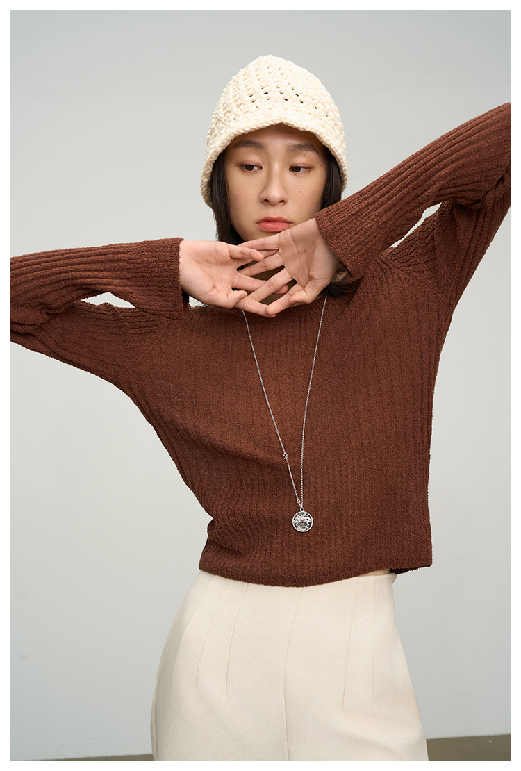 UMILAB【焦糖】优质长绒棉纱线竖坑条显瘦百搭圆领针织衫BM775H
