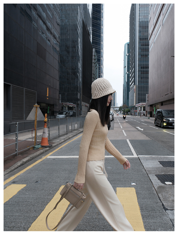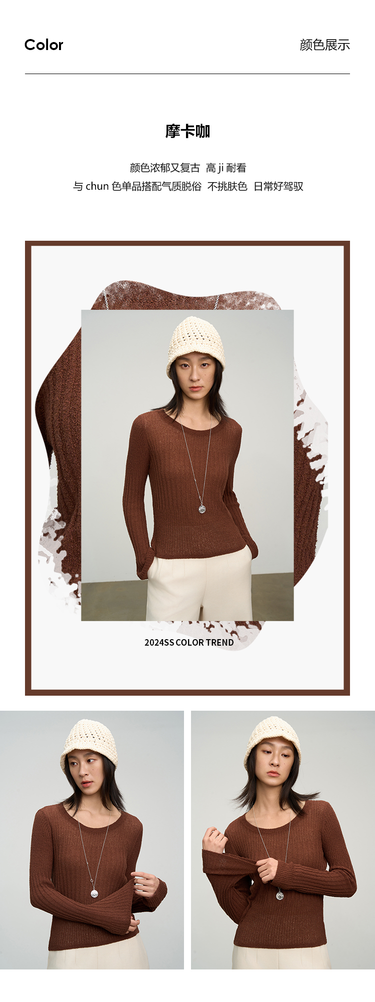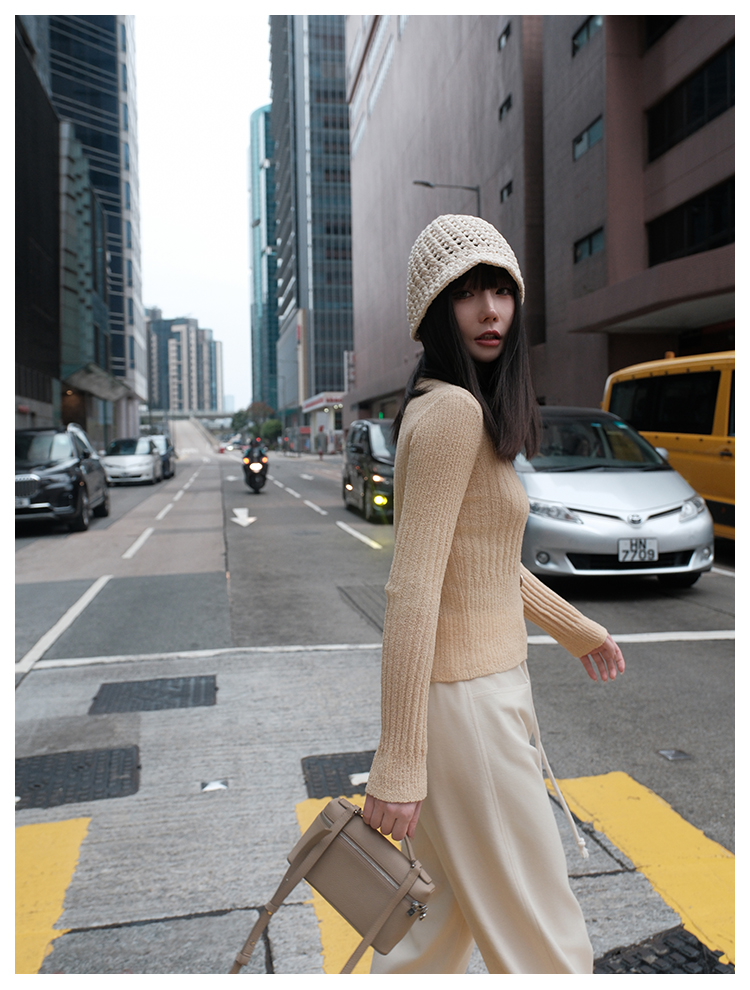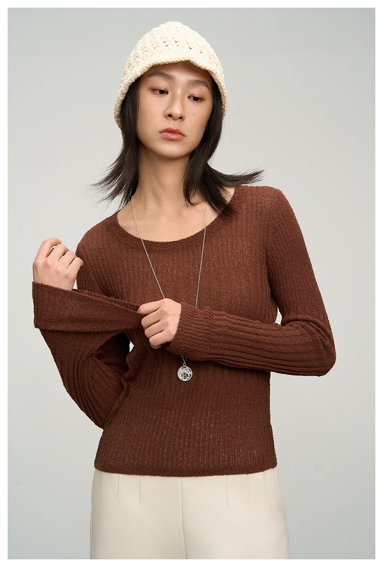 UMILAB【焦糖】优质长绒棉纱线竖坑条显瘦百搭圆领针织衫BM775H