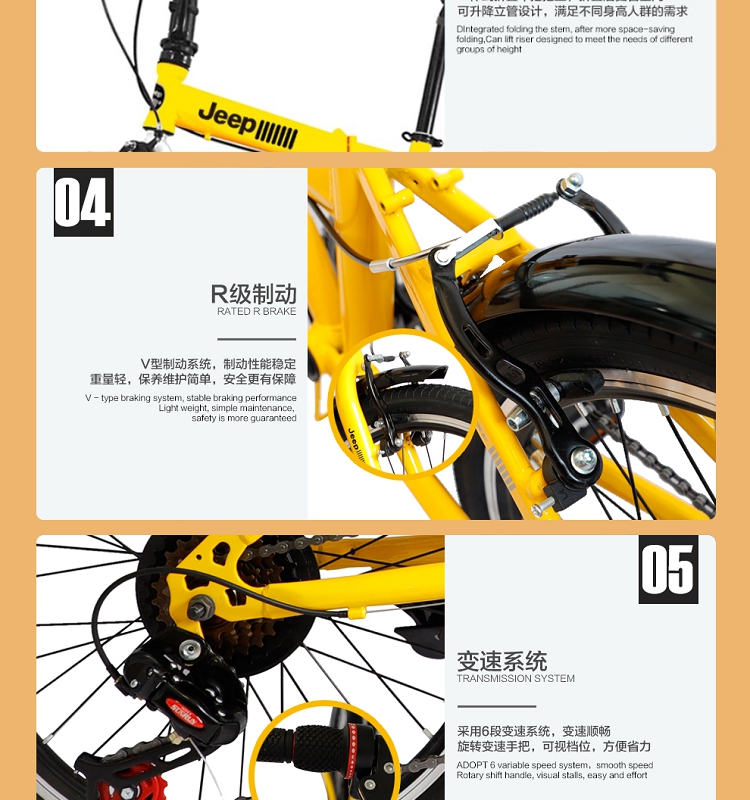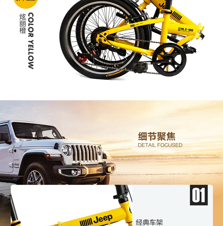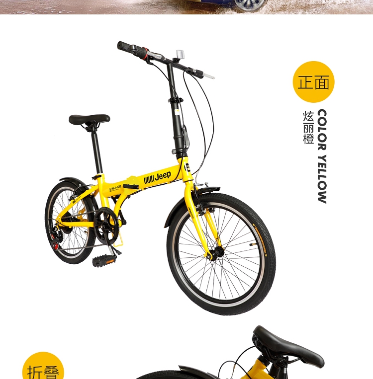 Jeep美国吉普 20寸 6速折叠休闲自行车 黄色