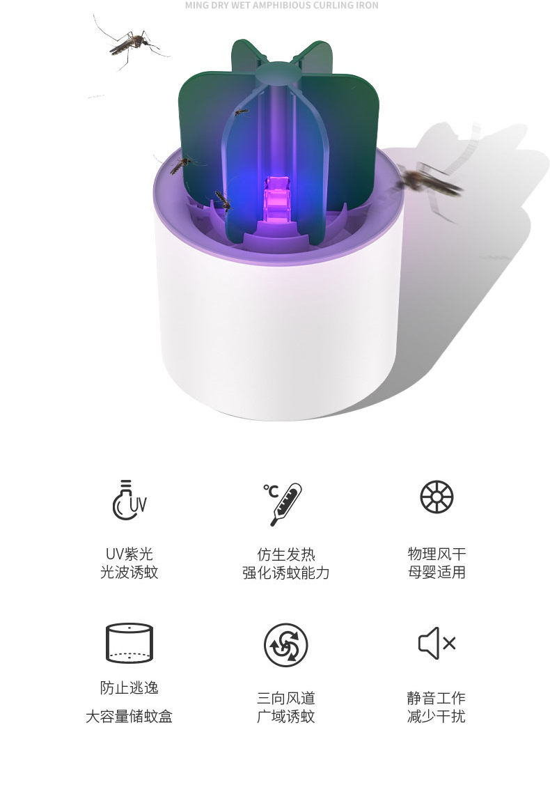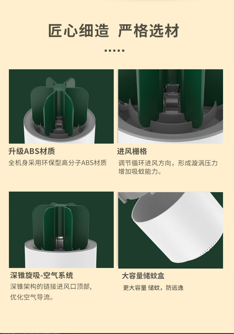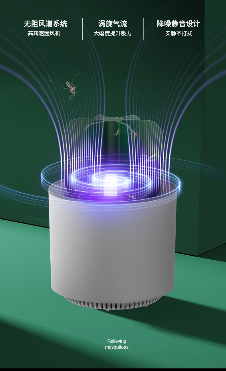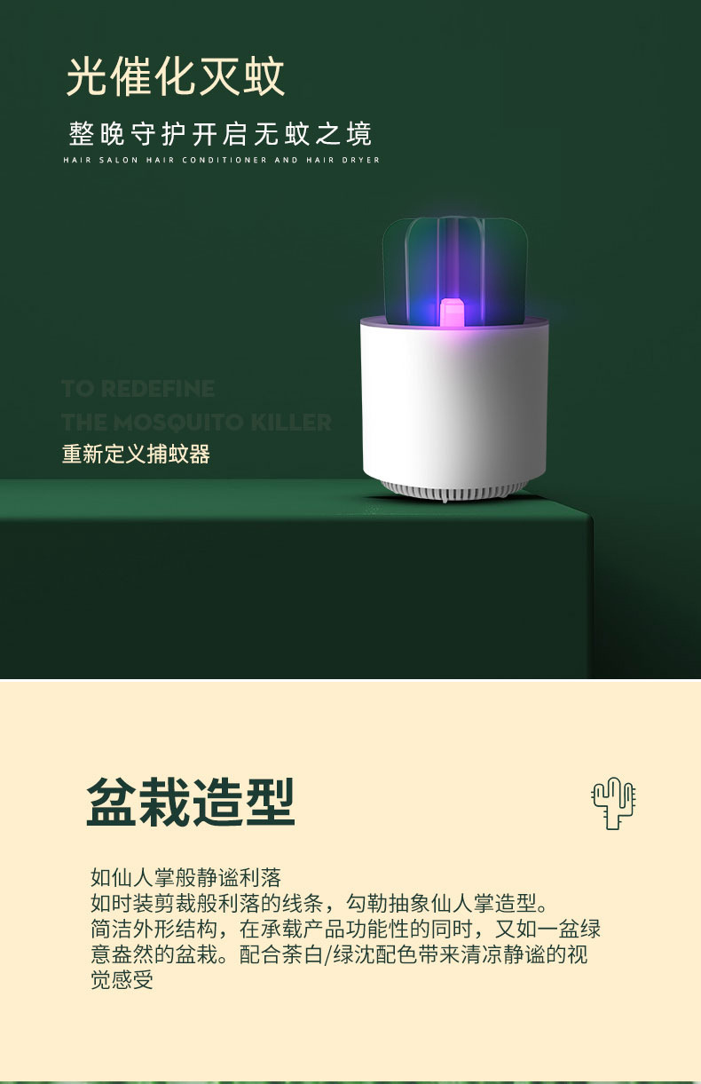 【智能捕蚊器,助你远离蚊虫困扰】仙人掌吸入式灭蚊灯,轻松守护家居环境。静音物理诱蚊光触媒,户外室内都能使用。
