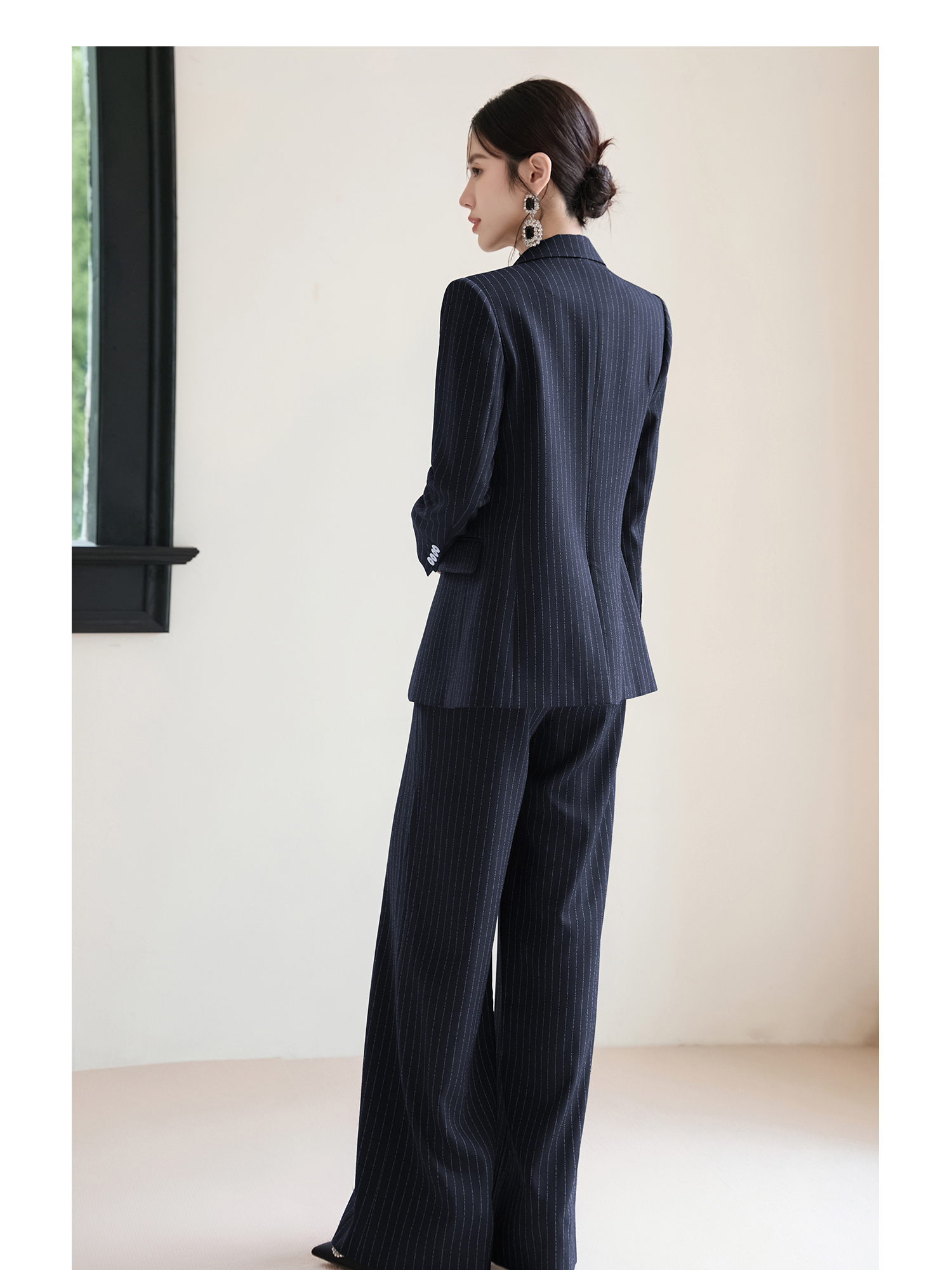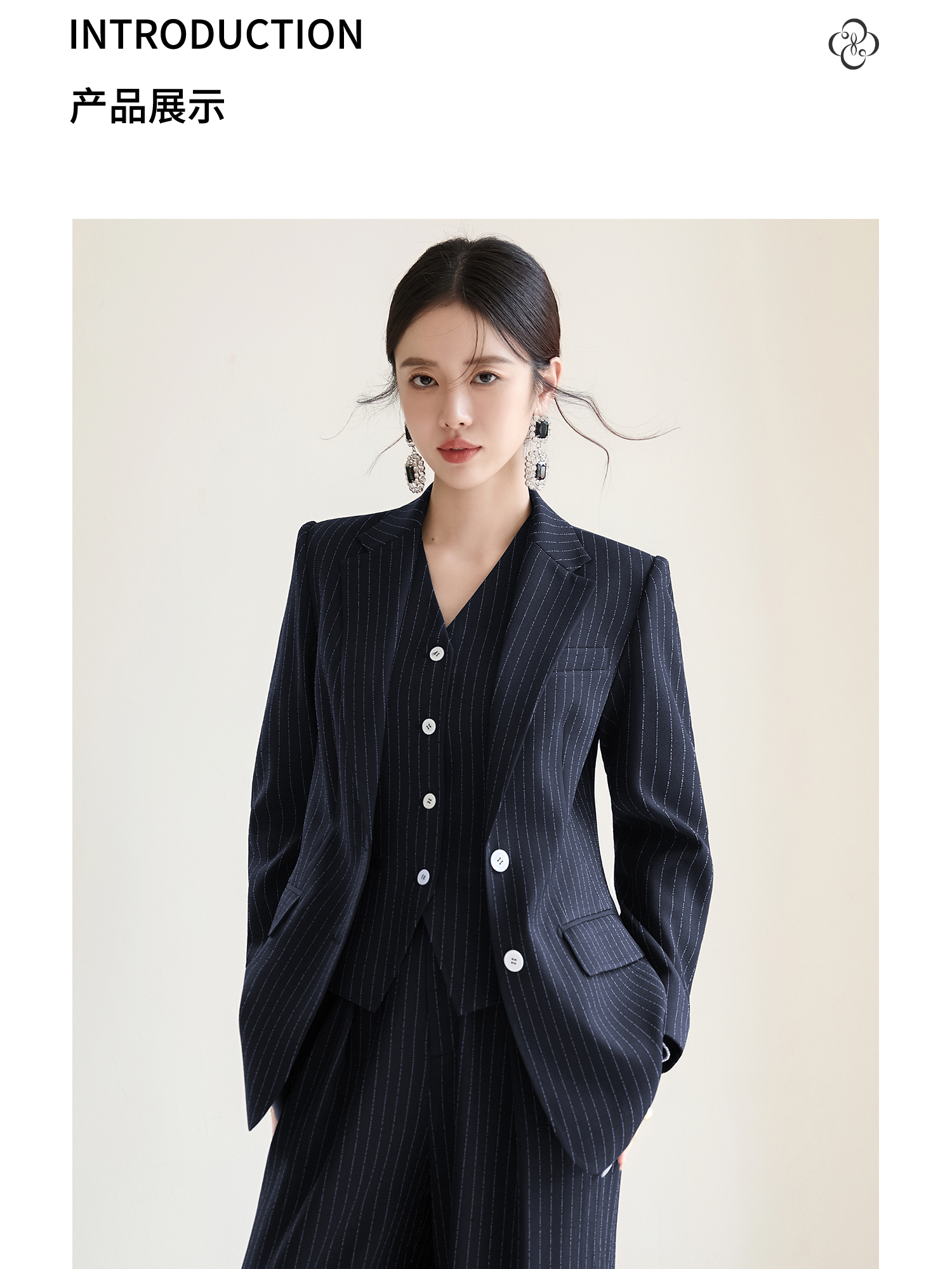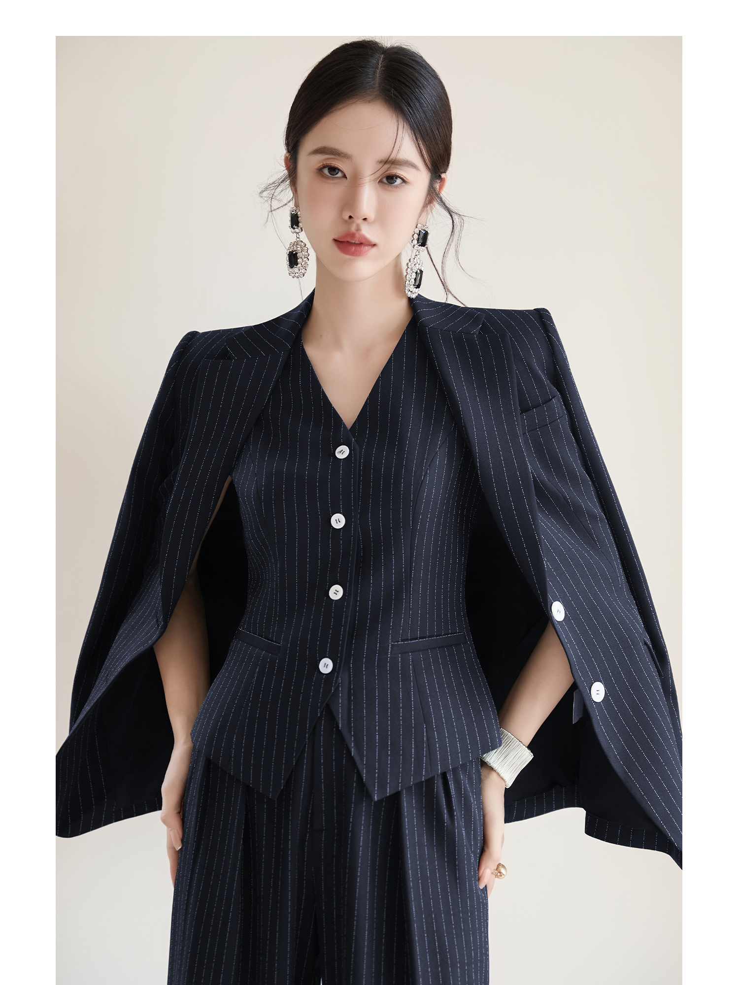 FUYAO扶摇 藏青色条纹西装套装女秋2025新款高级感西服马甲三件套