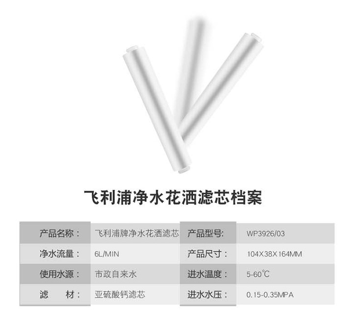 飞利浦(PHILIPS)花洒滤芯WP3926(3支装) 适用:WP3854 WP3955 WP3859