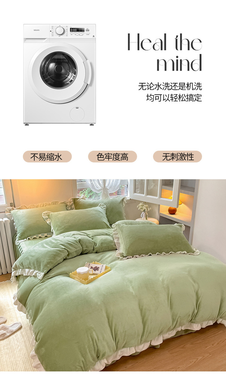 冬季牛奶绒四件套花边珊瑚绒被套法兰绒床上四件套加绒床单被罩