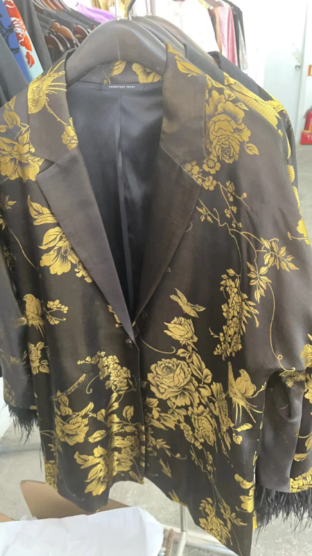 盛唐牡丹| 民国真丝老面料配鸵鸟毛西装外套-柠檬黄
