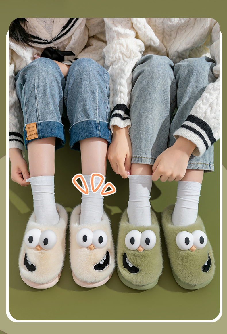 【暖冬出击!可爱漏齿小狗棉拖】冬天毛毛绒可爱卡通棉拖鞋,加厚舒棉绒,亲肤又保暖,EVA加厚鞋底,防滑耐磨不易断底,情侣室内家居防滑棉,室外拖鞋男士L