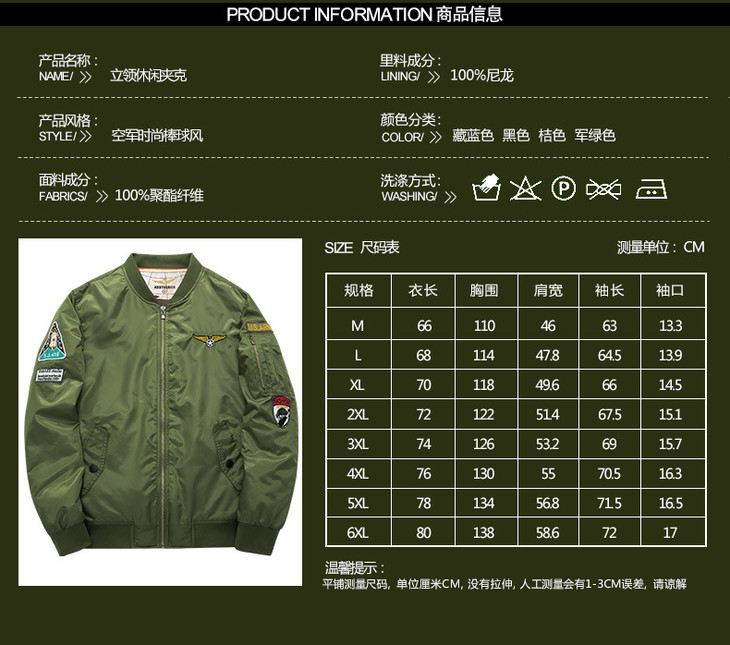 【服饰鞋包】*秋冬大码男装棉衣运动欧美立领夹克空军一号MA01飞行员棒球服