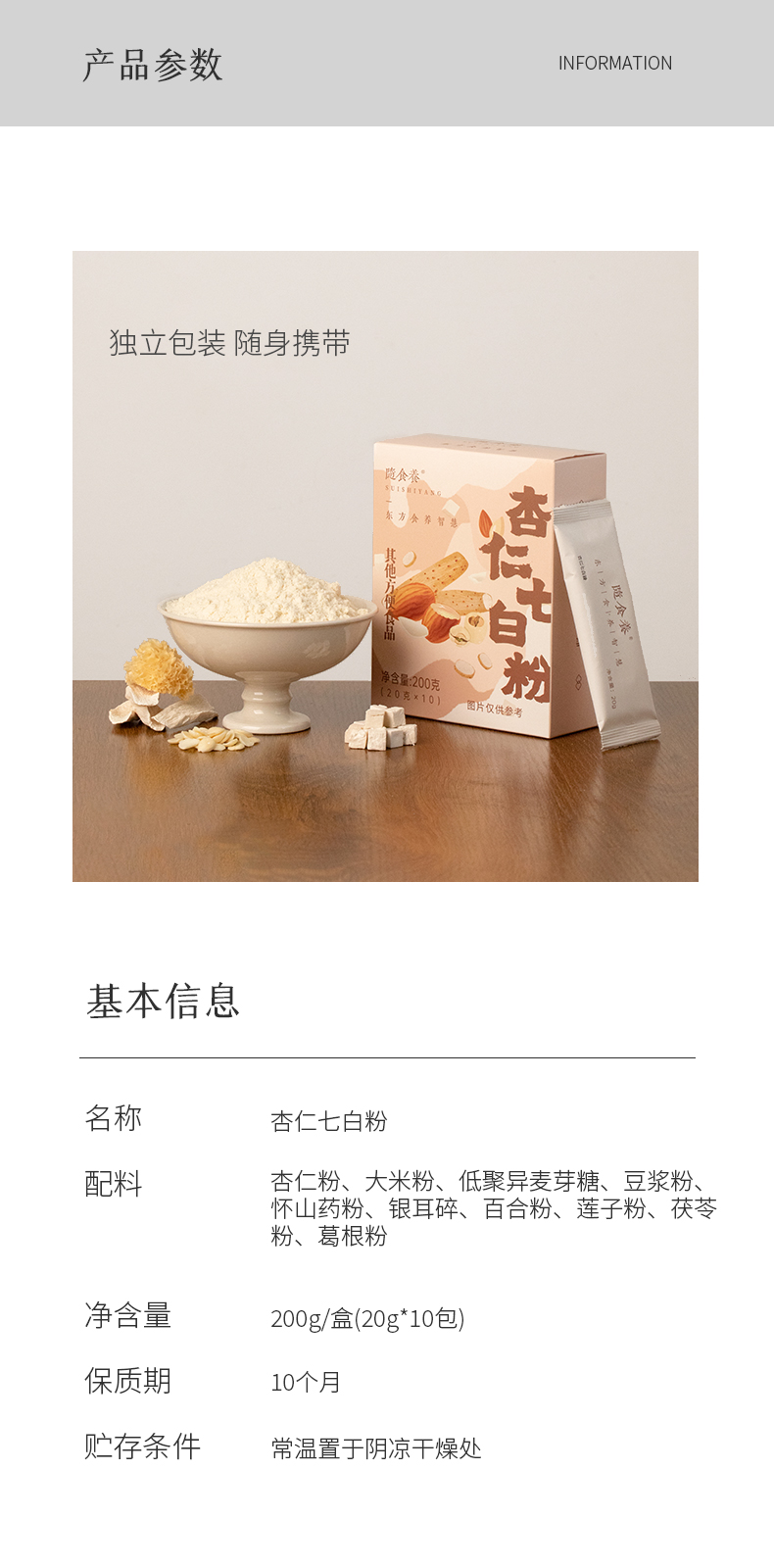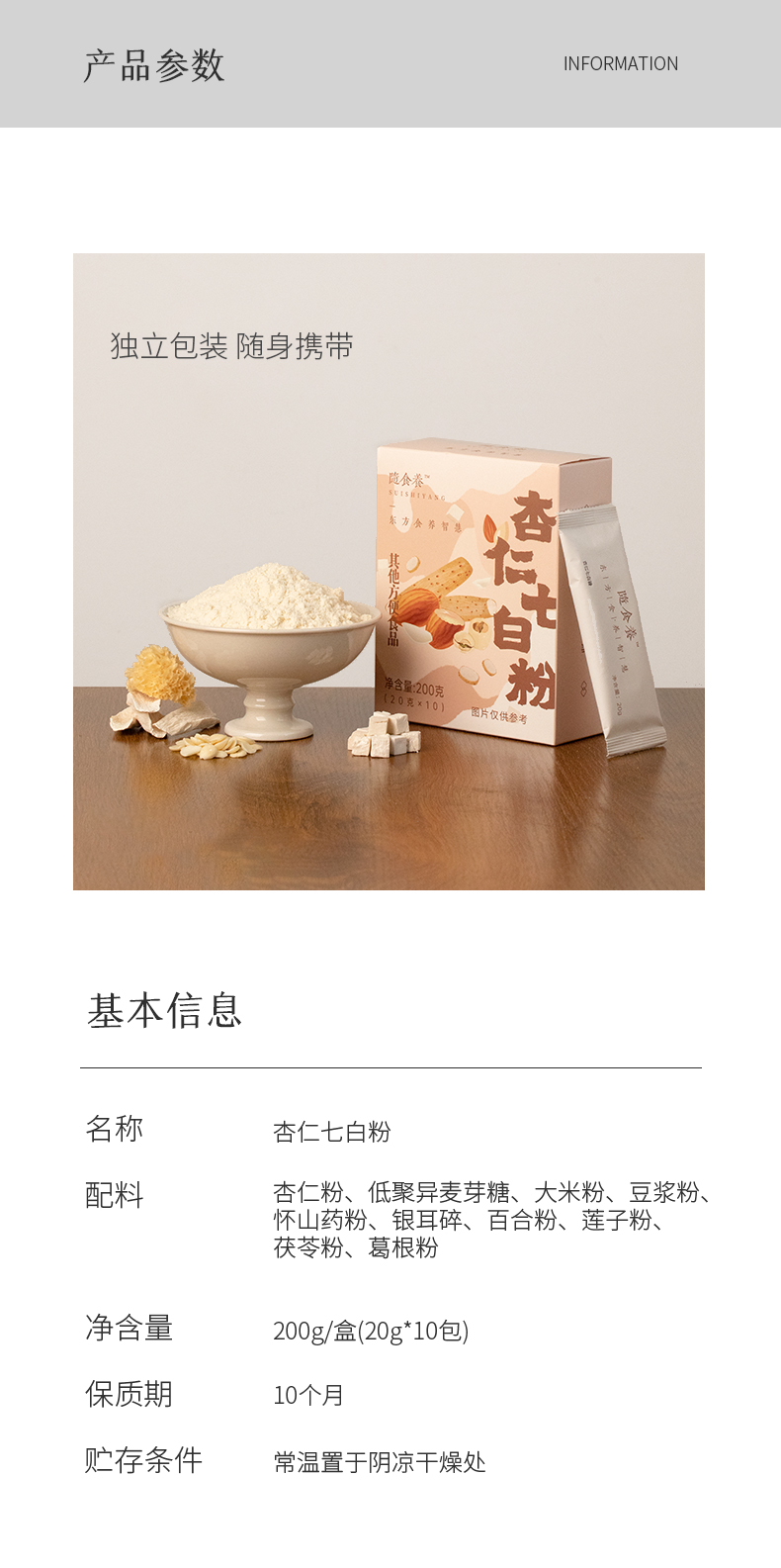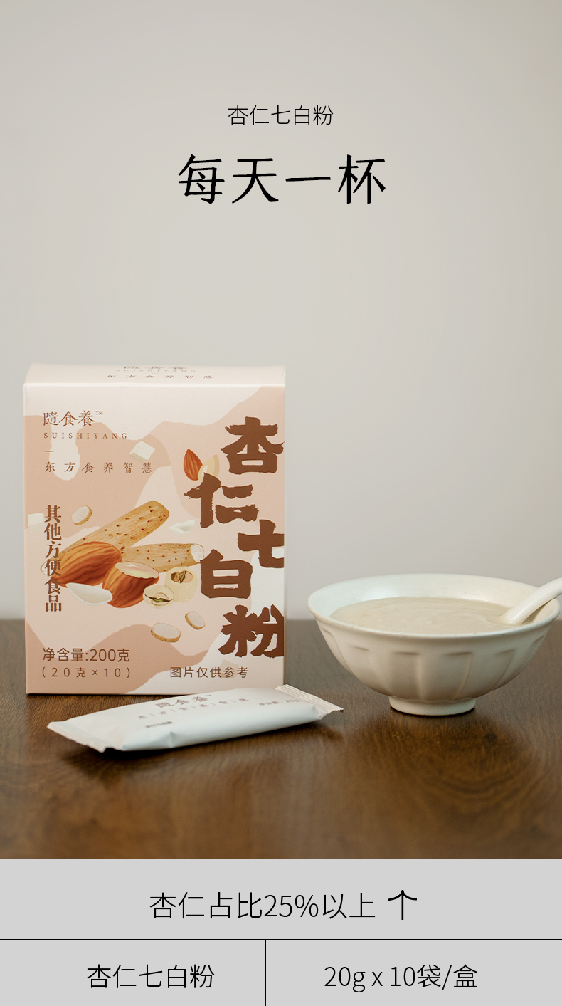 杏仁七白粉 不脱油杏仁,口感滑润好吸收 20g*10/盒