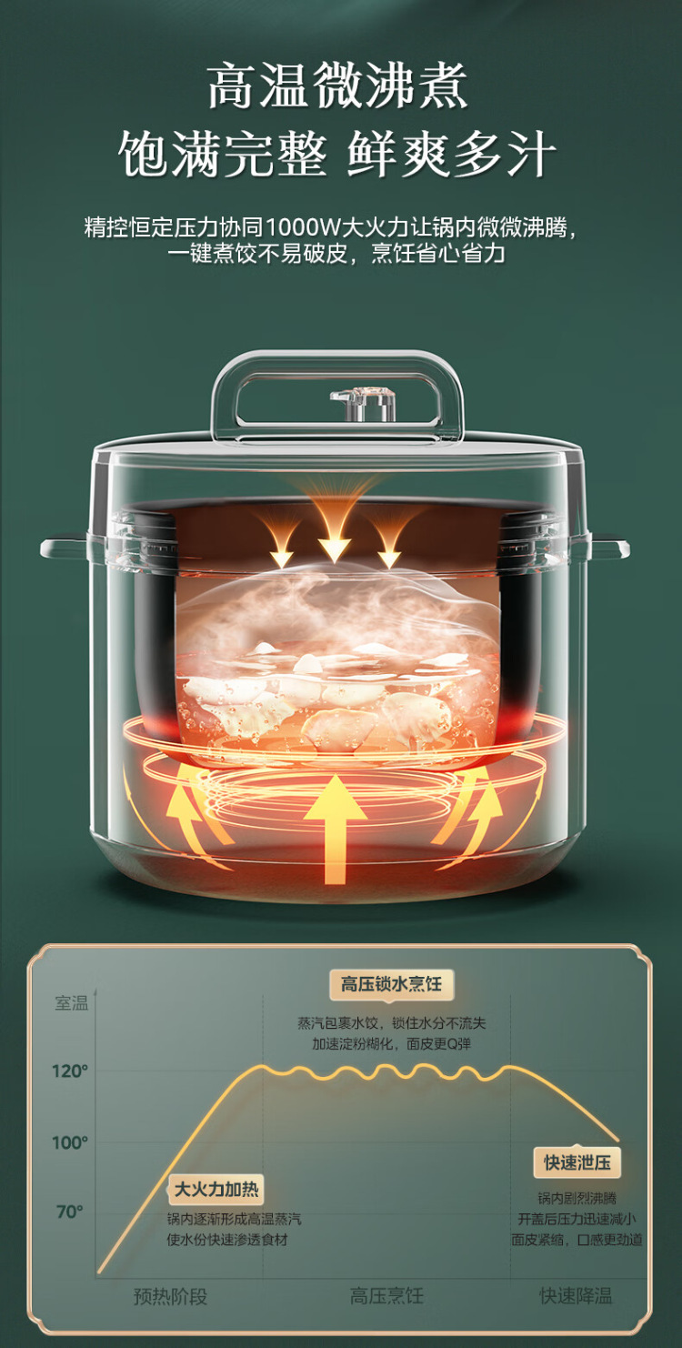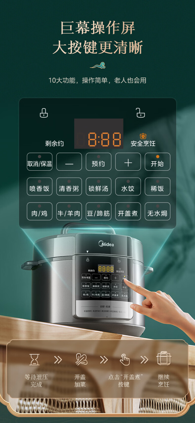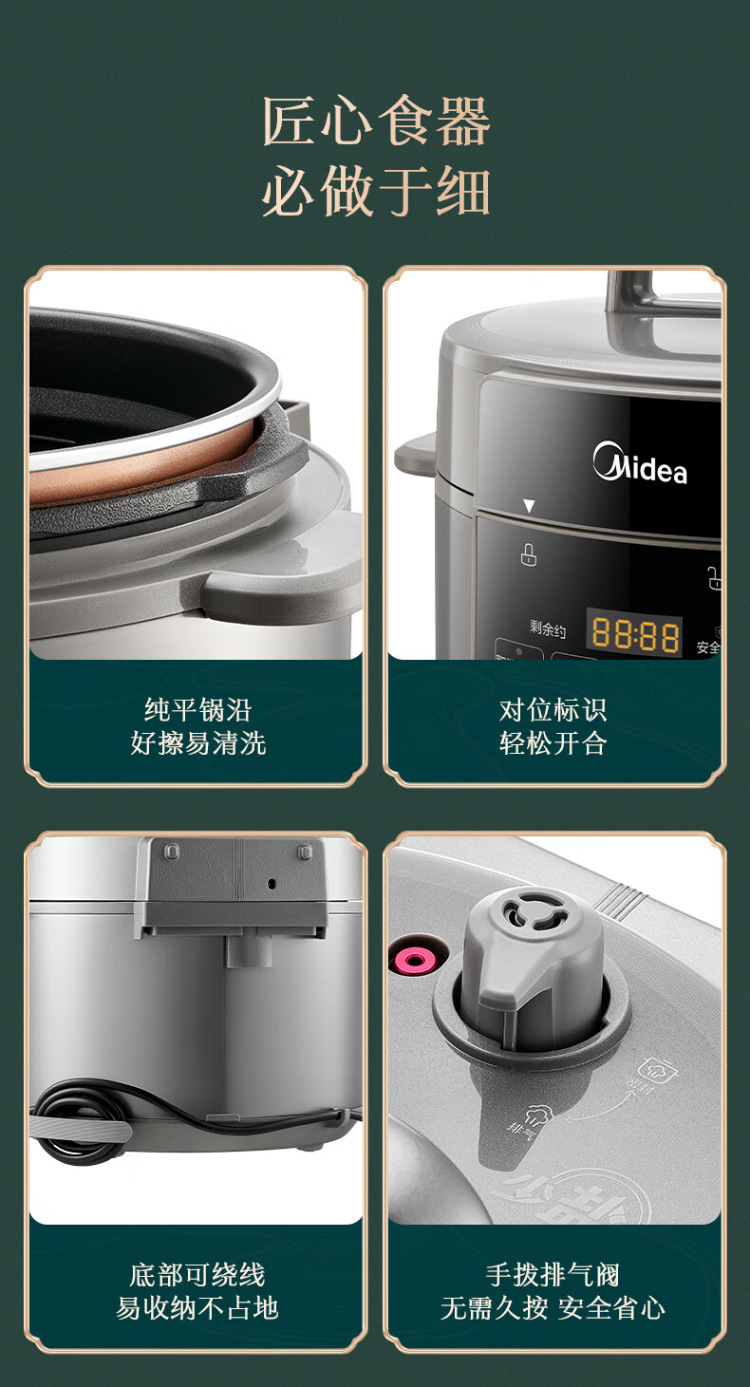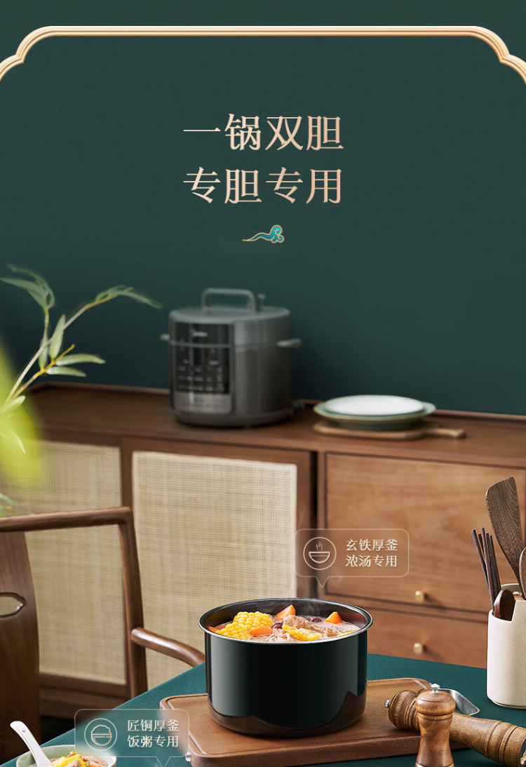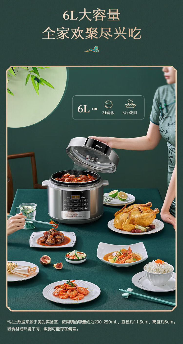 Midea/美的 家用智能6L升双胆提鲜电高压锅多功能电饭煲MY-E6910