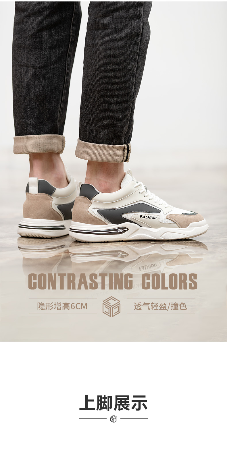 增高鞋男6CM夏季透气休闲运动鞋隐形内增高男鞋舒适内增高鞋春夏