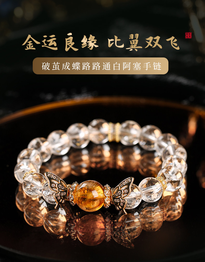 【祈愿吉品】破茧成蝶路路通白阿塞手链女