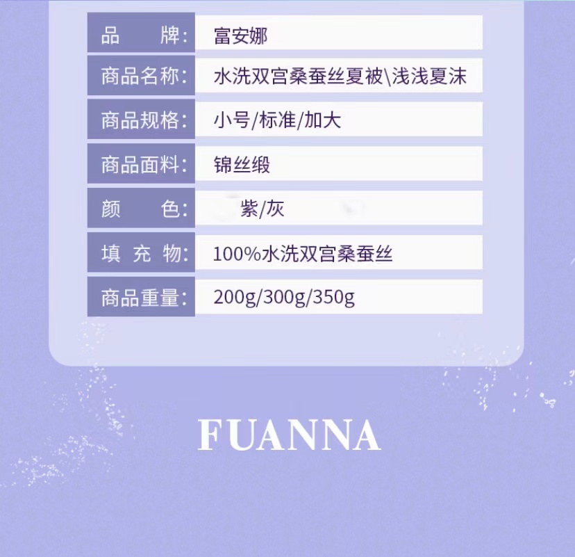 【春上新】10楼 富安娜 水洗双宫桑蚕丝夏被/浅浅夏沫 吊牌价:4380-4980元 活动价1299-1399元