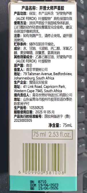 南非进口 开普大师芦荟胶75ml/支