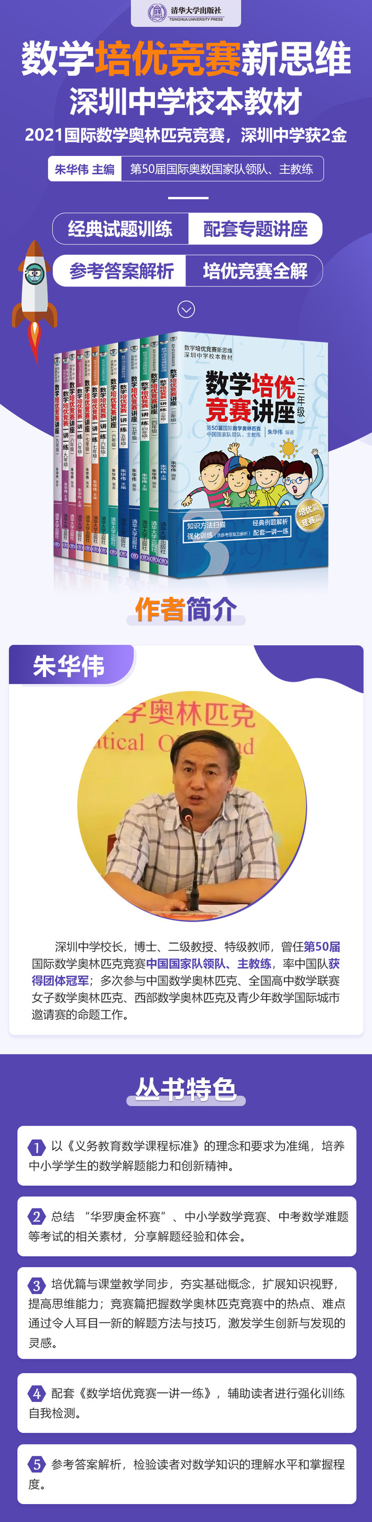朱华伟,第50届国际数学奥林匹克中国国家队领队、主教练。 朱华伟,深圳中学校长,博士,二级教授,特级教师,博士生导师,湖北省十大杰出青年,享受国务院政府特殊津贴专家,全国优秀教育工作者,美国加州州立大学洛杉矶分校高级访问学者。 兼任中国创新人才研究会副会长、中国教育数学学会常务副理事长,中国数学会教育委员会委员,全国华罗庚金杯赛主试委员,国际数学竞赛学术委员会副主席。 多次参与中国数学奥林匹克、全国高中数学联赛、女子数学奥林匹克、西部数学奥林匹克及青少年数学国际城市邀请赛的命题工作。曾任国际数学奥林匹克中国队领队、主教练,率中国队获团体冠军。在国内外发表论文100余篇,出版著作100余部。2018年获国家级教学成果奖二等奖。 |