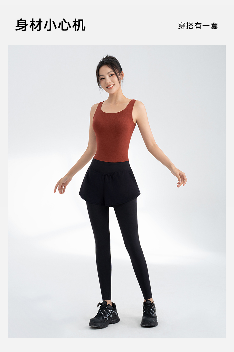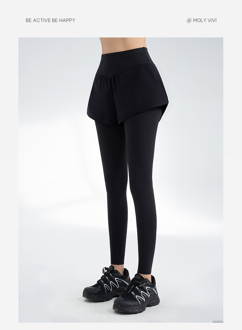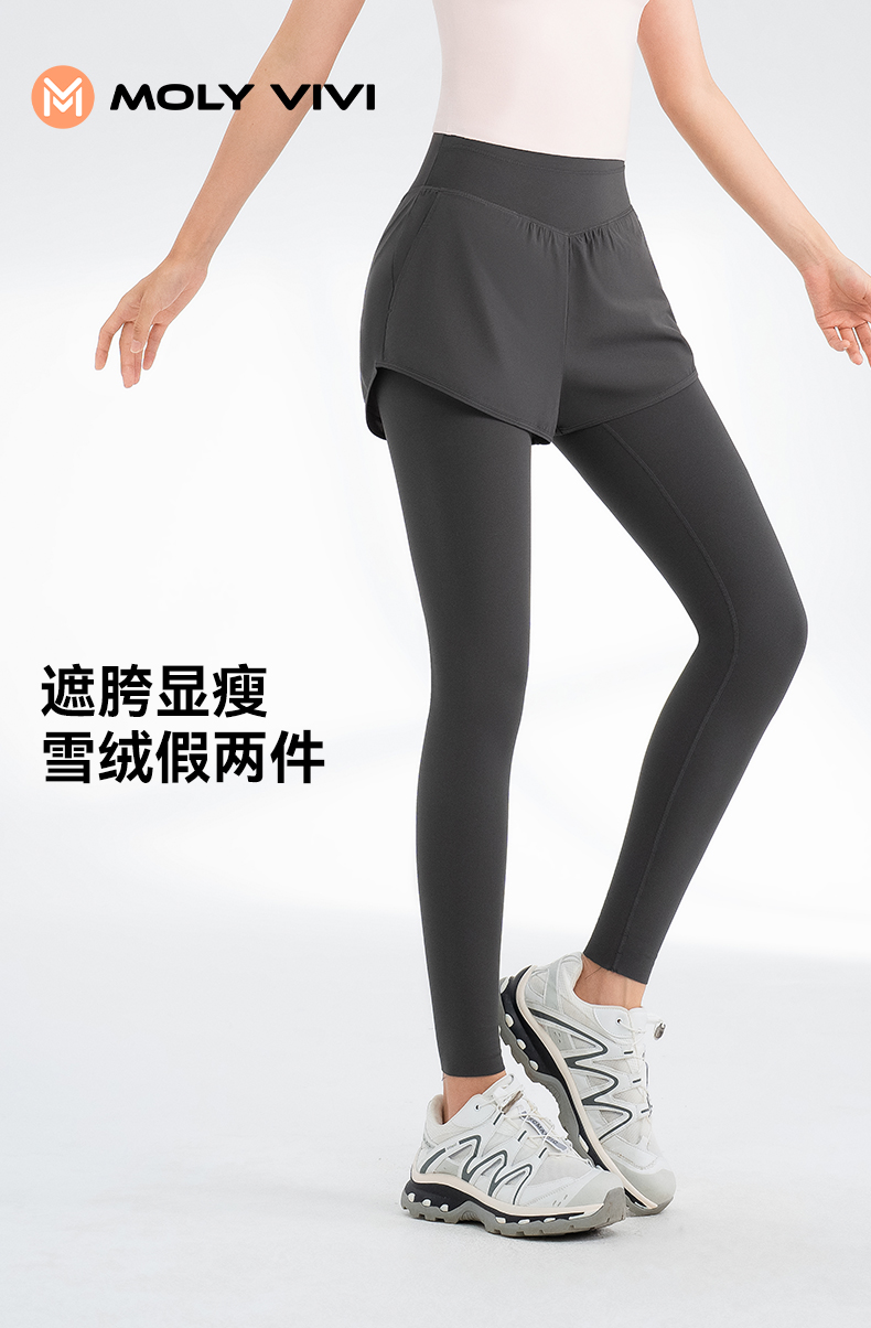 MOLYVIVI假两件雪绒裤2024秋冬新款运动跑步健身服瑜伽保暖长裤