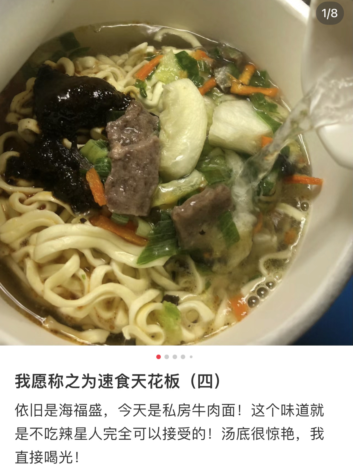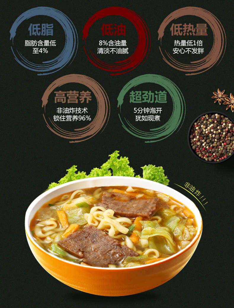 私房牛肉面,我更喜欢!选用新鲜牛骨高汤,慢熬细炖制出汤头,浓香开胃,原汁原味,再加上蔬菜和牛肉组成的FD冻干汤菜包,用水一泡就自然化开,新鲜还原!面条非油炸低卡,但很是滑韧,有手擀面质感,牛肉粒虽小颗,但很有肉感,汤底更是惊艳,直接喝光!