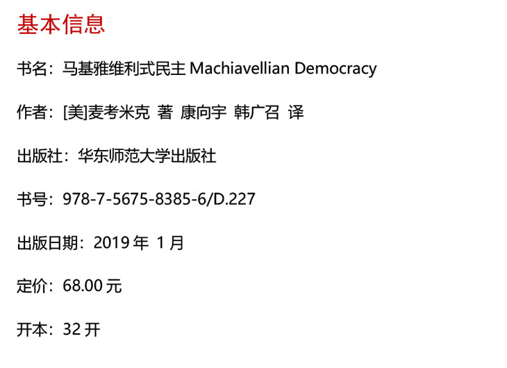 马基雅维利式民主 西方传统 经典与解释 马基雅维利集