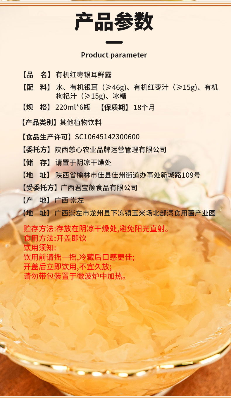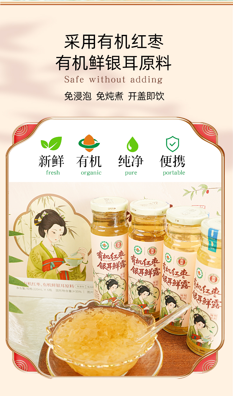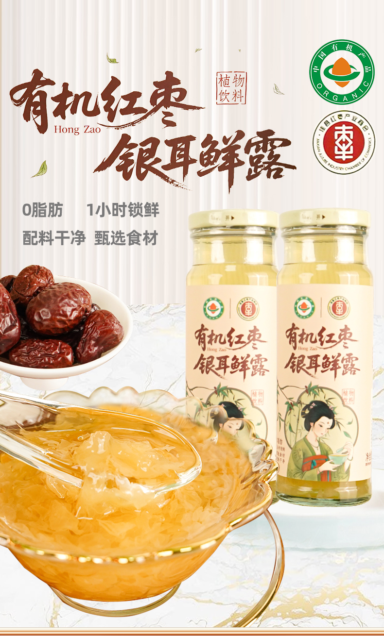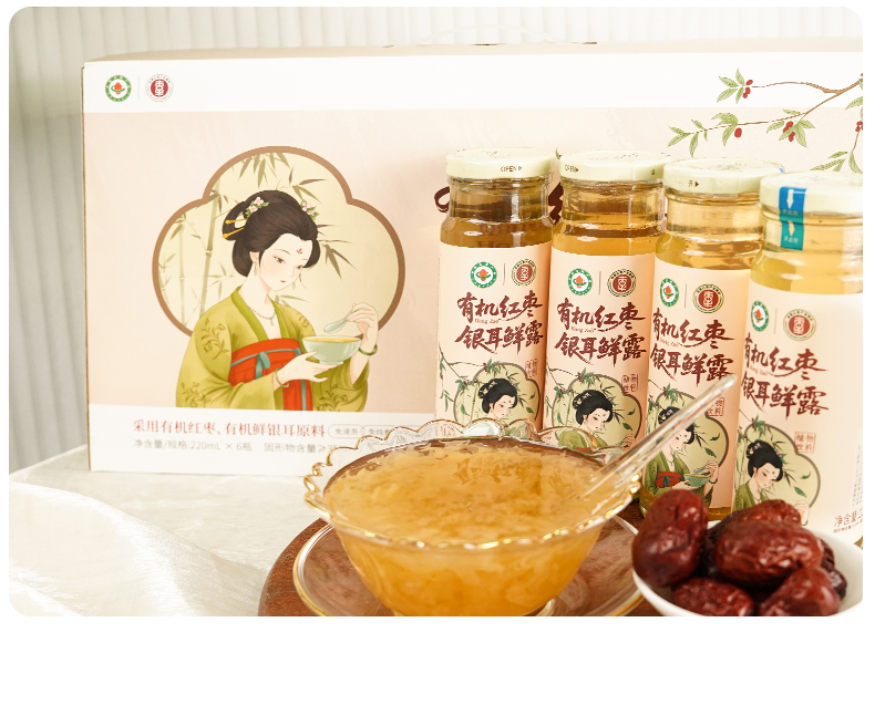 【厂商直发】有机红枣银耳鲜露220ml*6瓶装开口即食代餐免煮0脂肪包邮