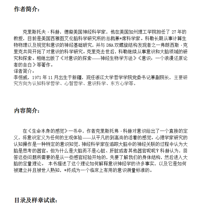 第一推动·生命系列:生命本身的感觉 神经科学脑科学意识意识神经学