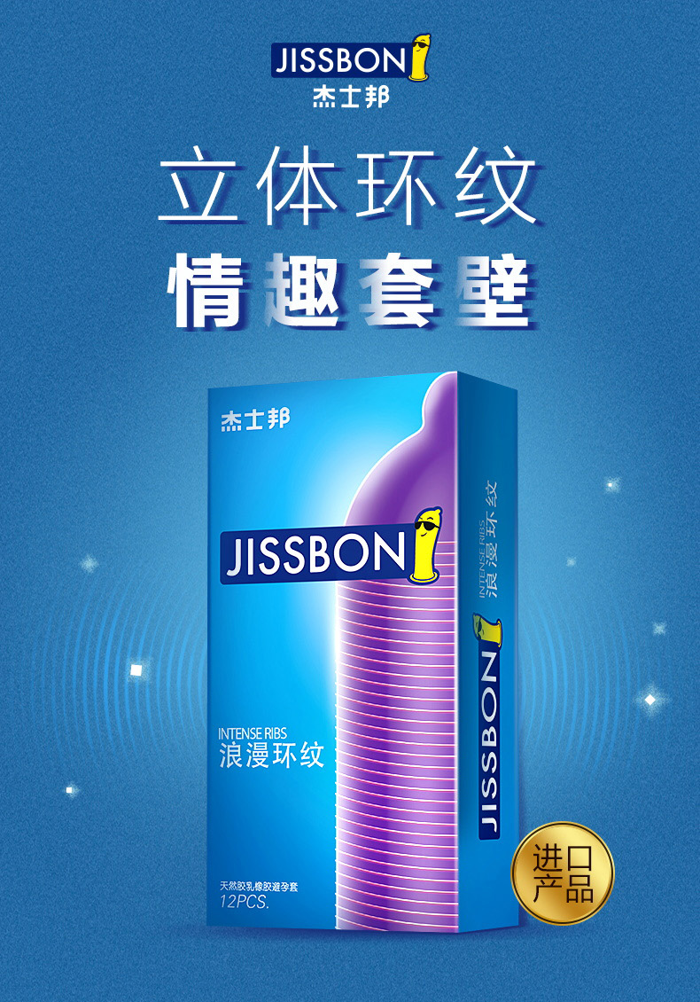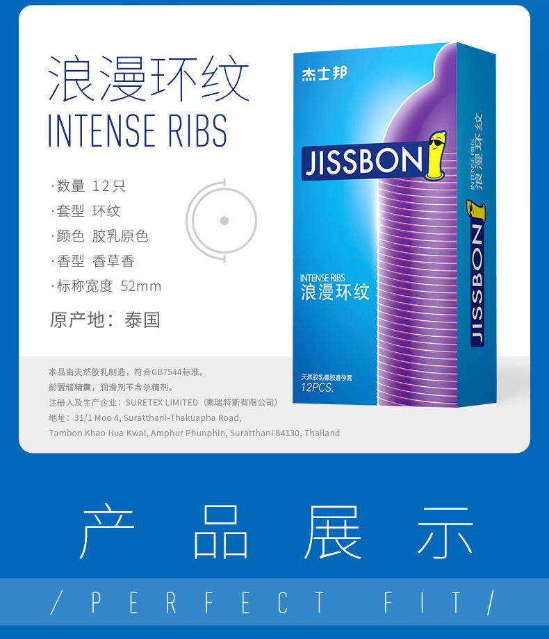 杰士邦 浪漫环纹避孕套 12只/24只装 立体环纹