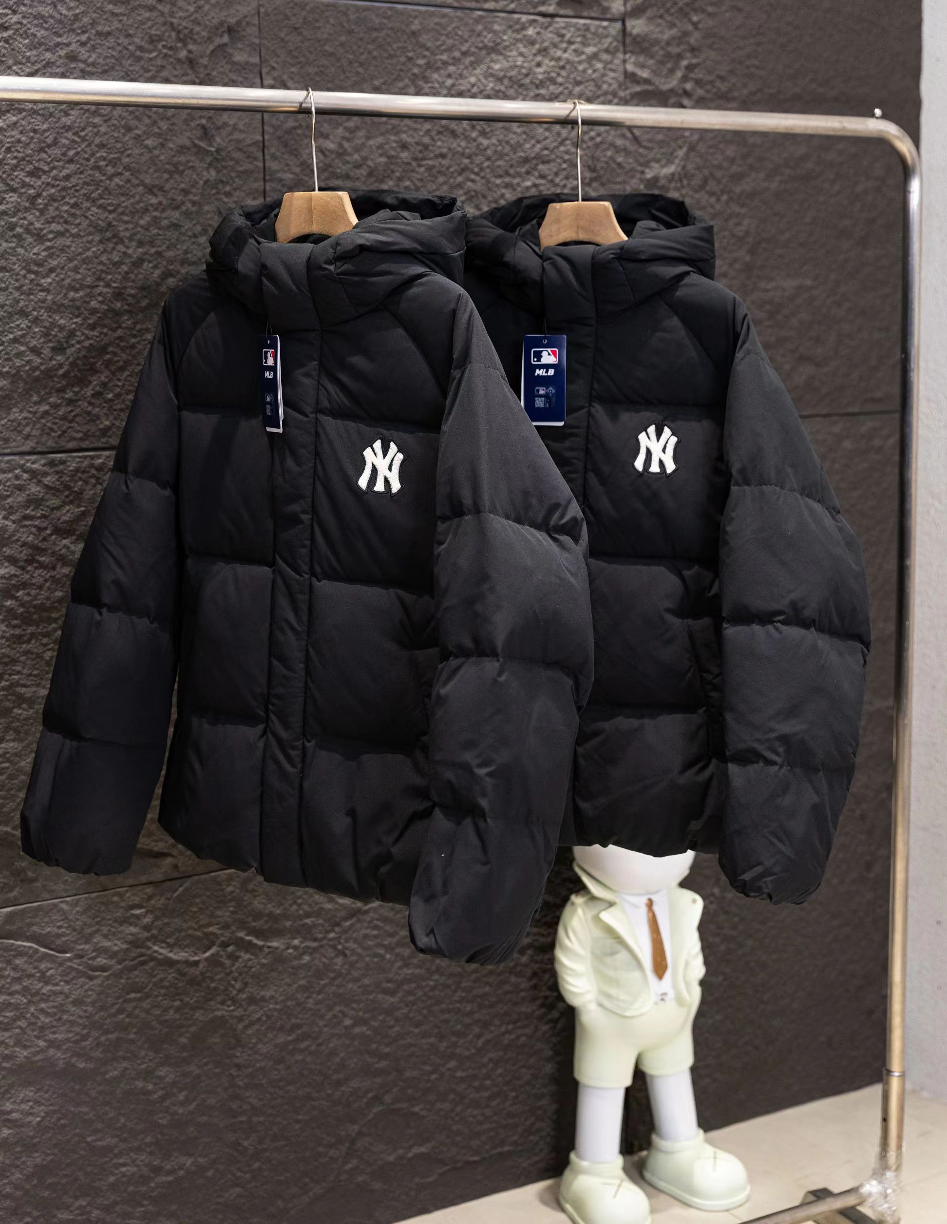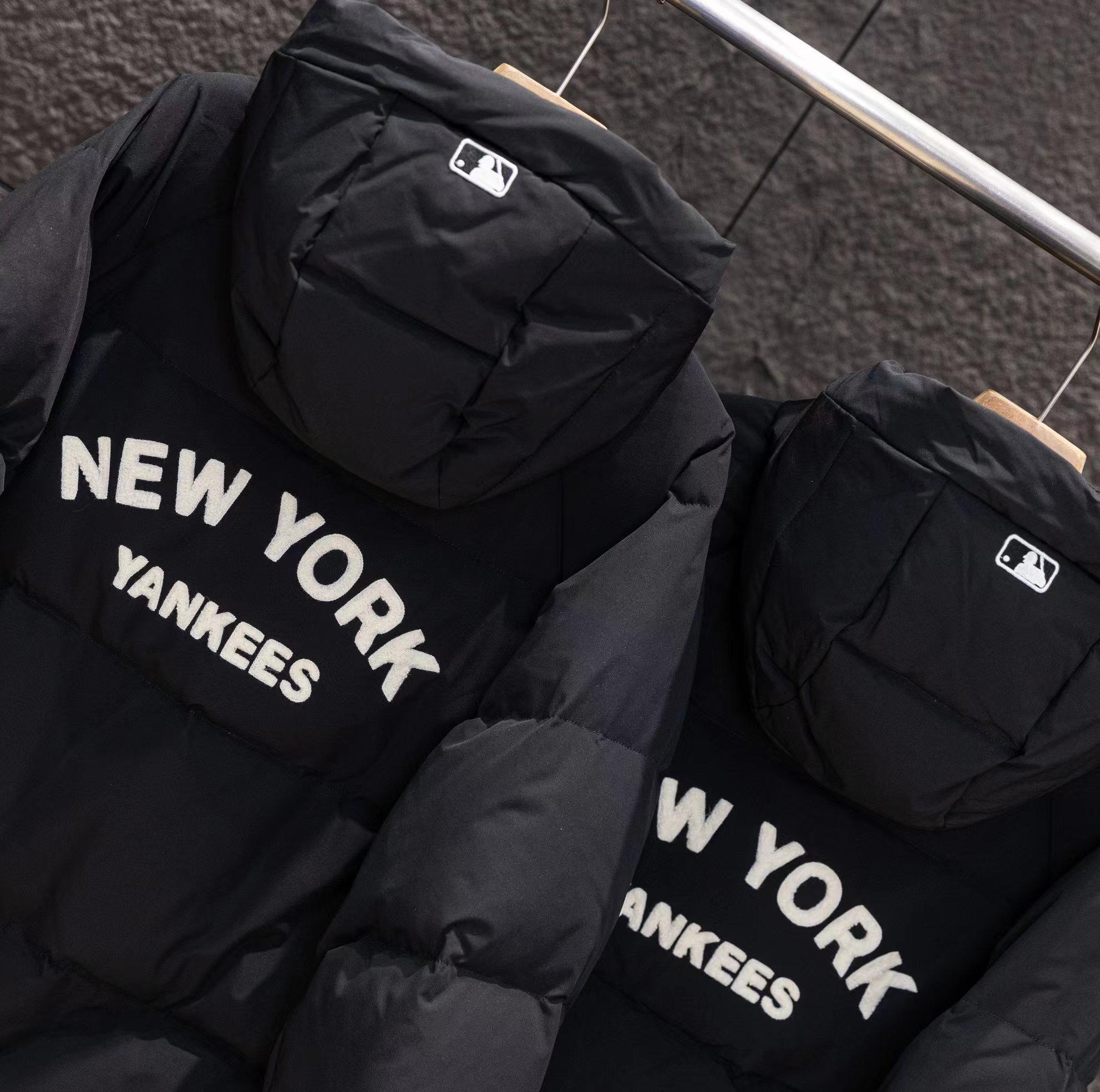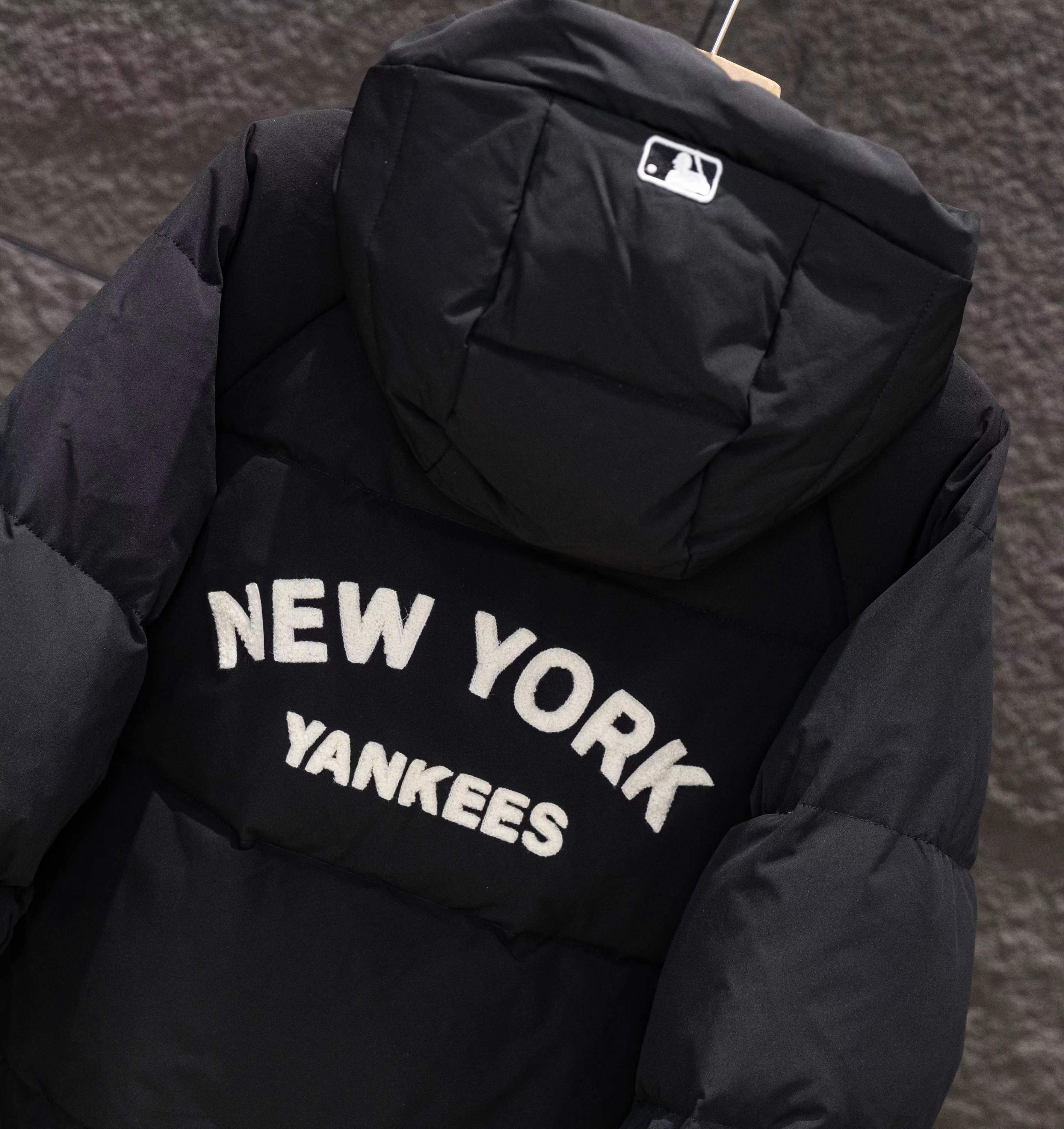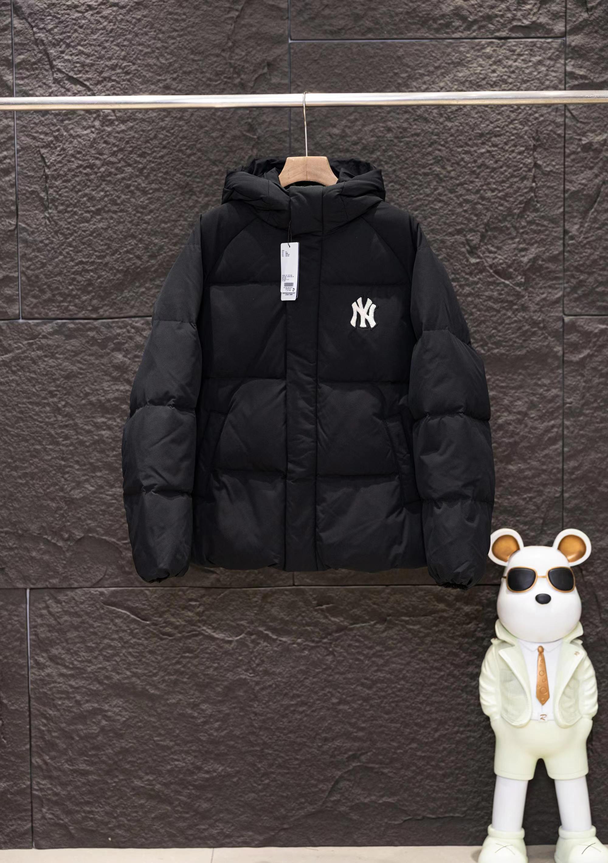 纽约限定张凌赫同款毛巾刺绣小标连帽长款羽绒服男女同款
