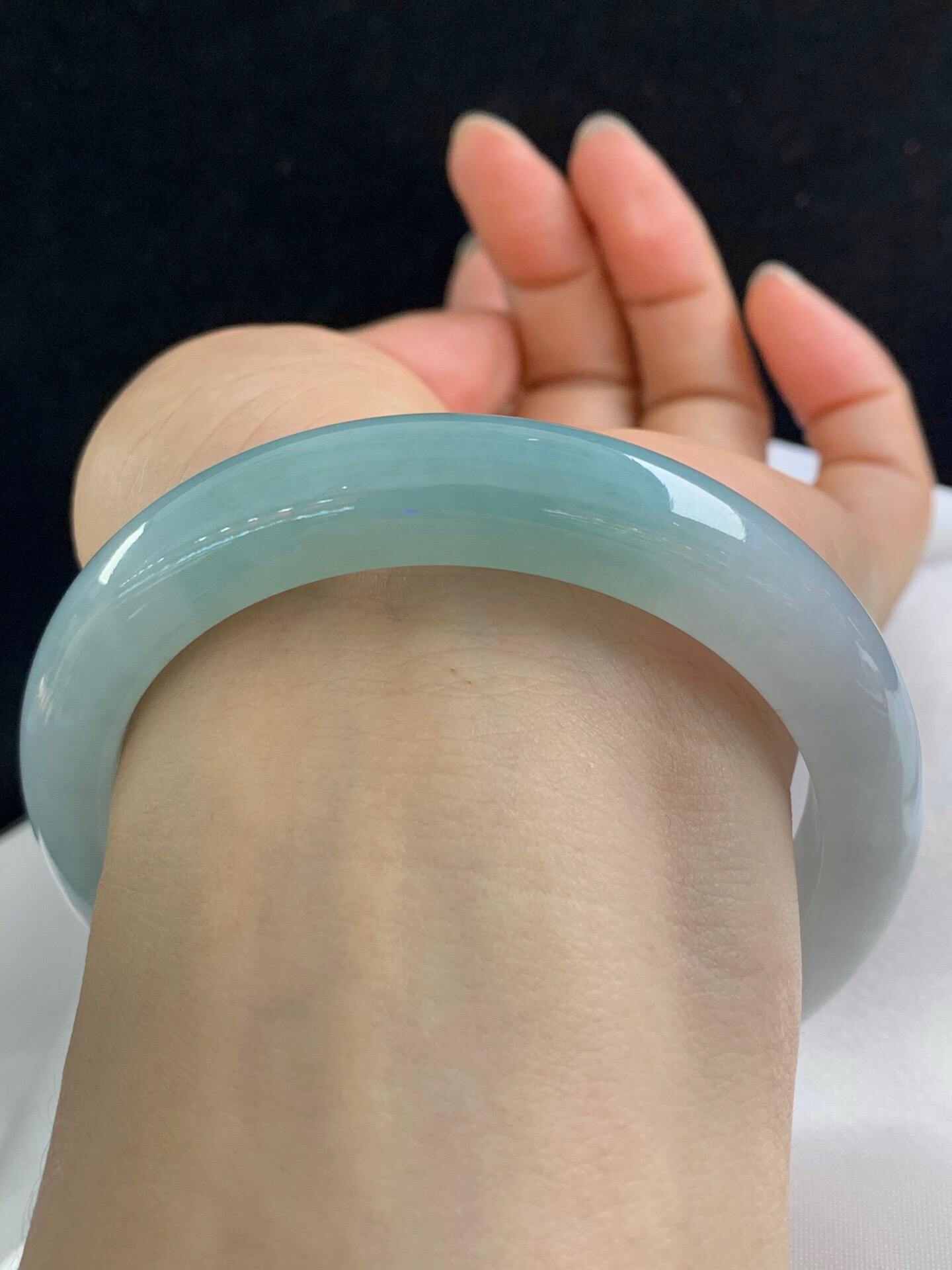 620739,54.5冰晴细条正圈,9.6-7.8mm 整条冰冰的,纯净干净,一截略带晴底色,秀气完美