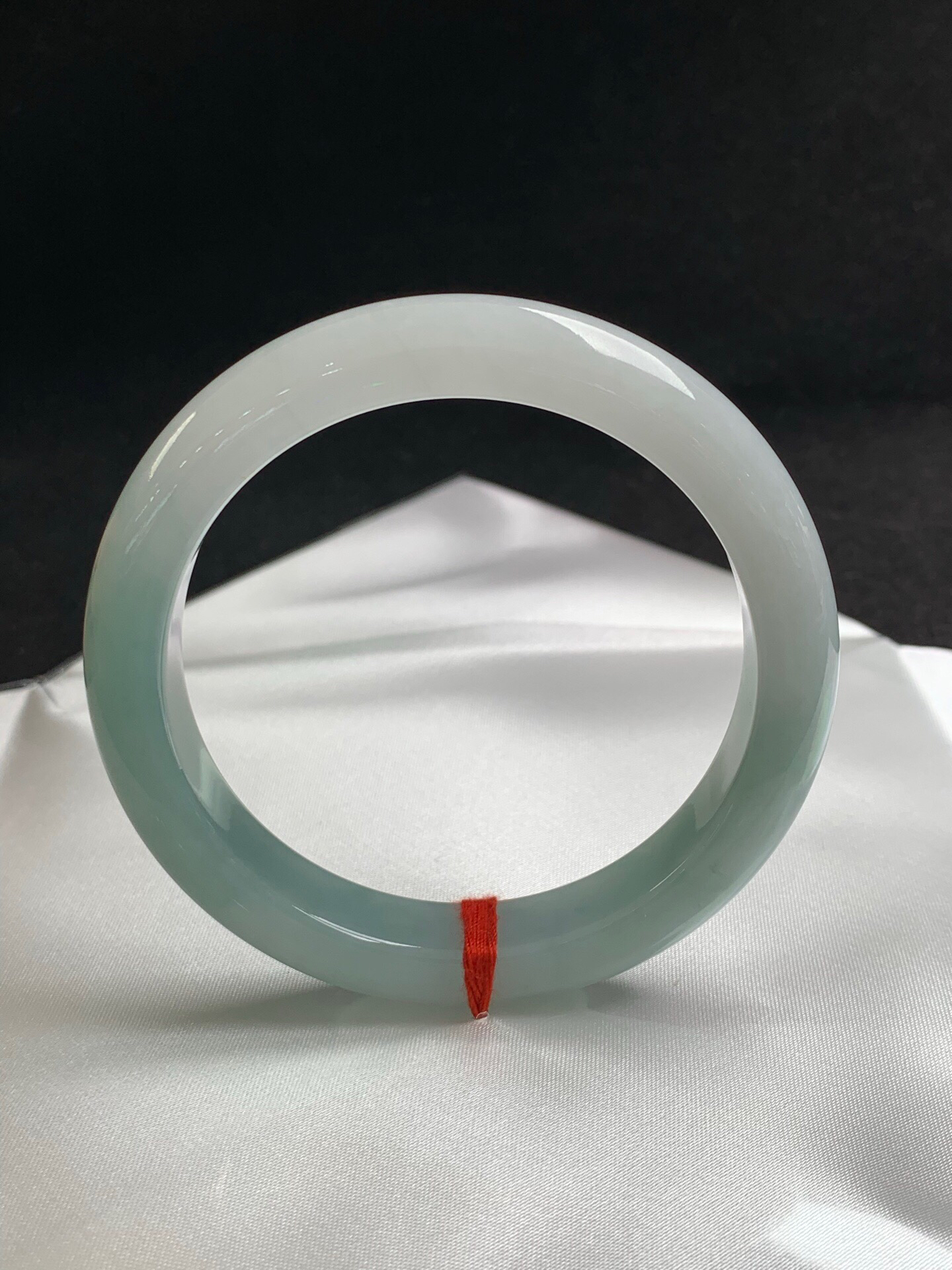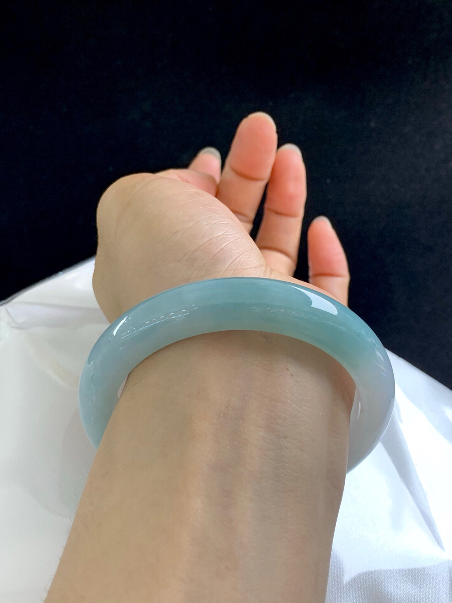 620198,61圈口,糯化飘油青半山水正圈平安镯,种老水足,底子细润,完美,尺寸:61.2-12.3-9.2,超值价💰14000 #优石客珠宝#香玉荟萃