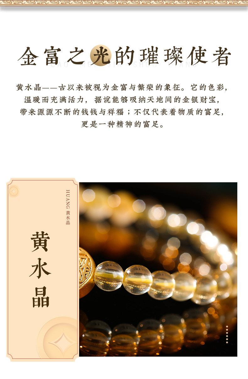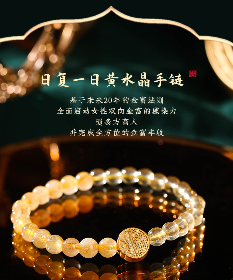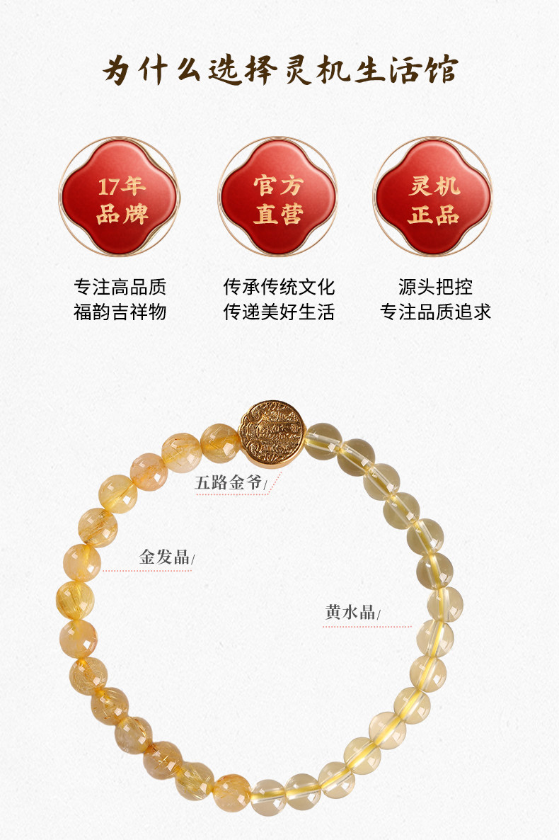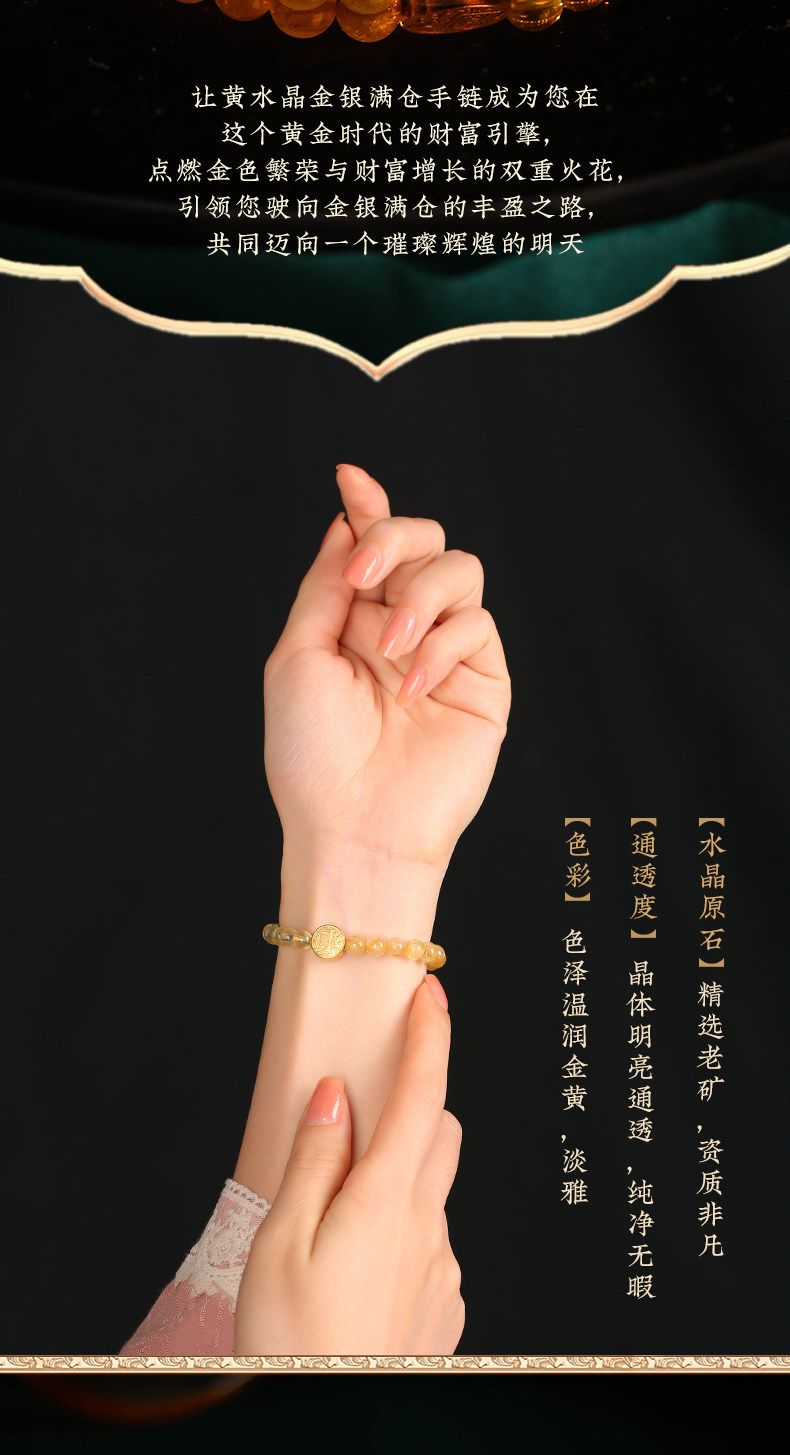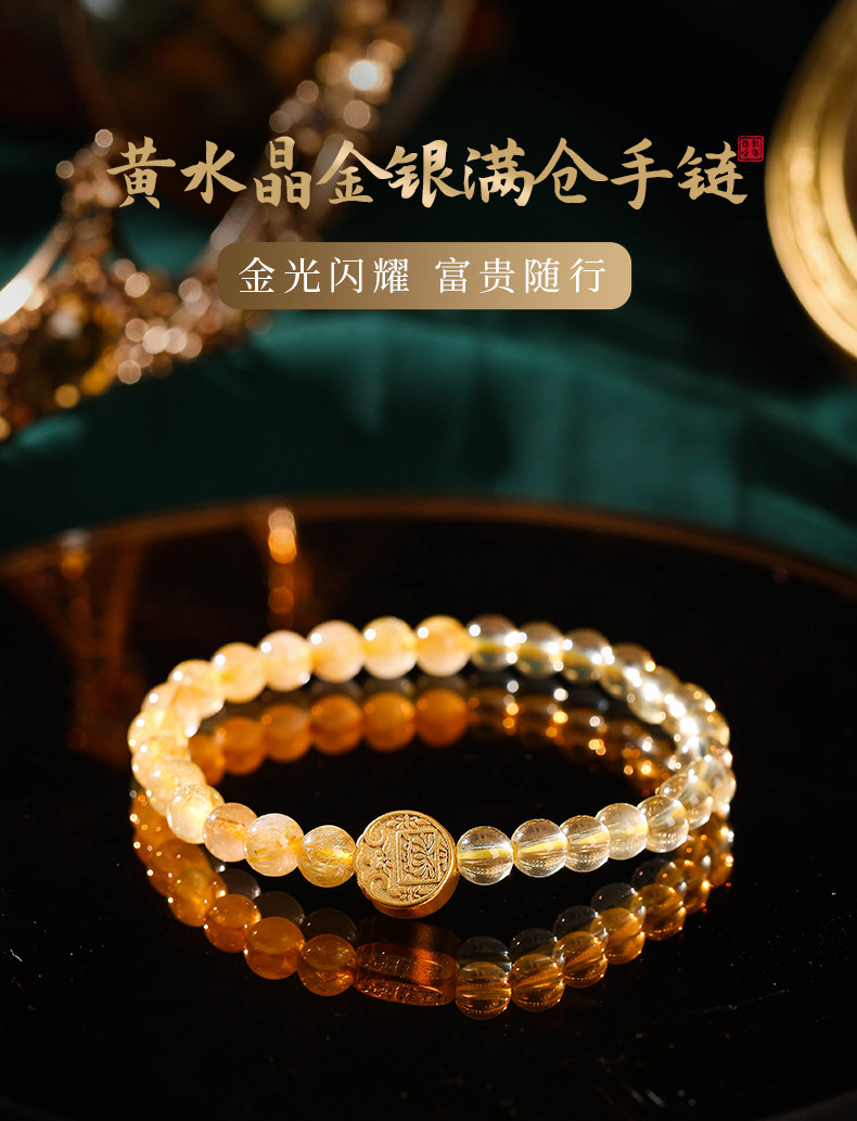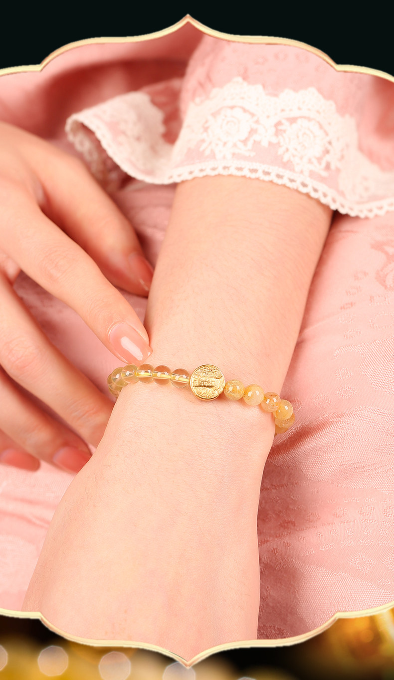 【祈愿吉品】财神手链金黄水晶金发晶钱母手串水晶高级感手饰