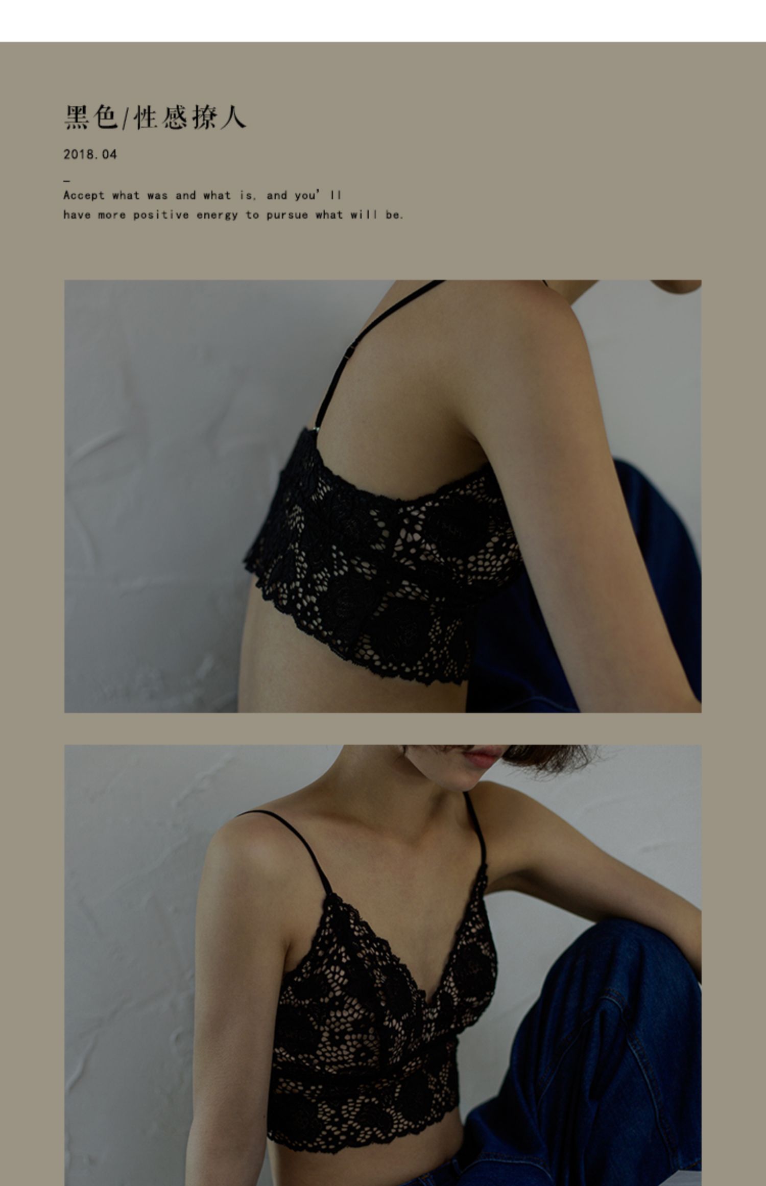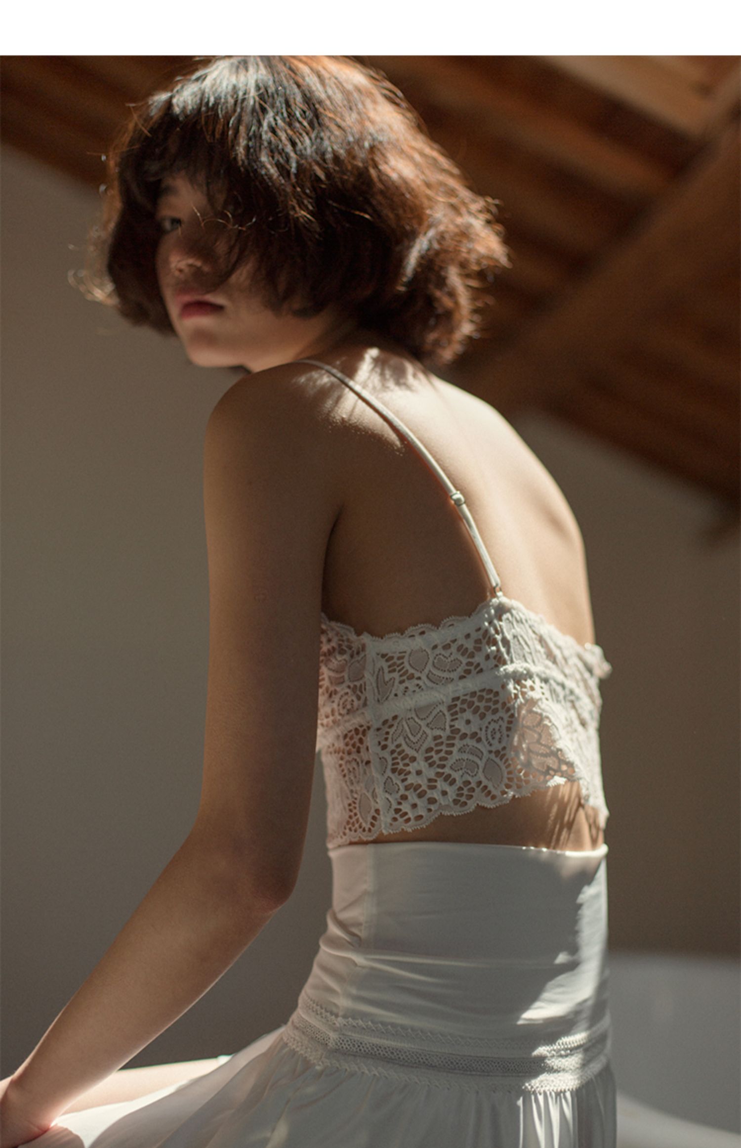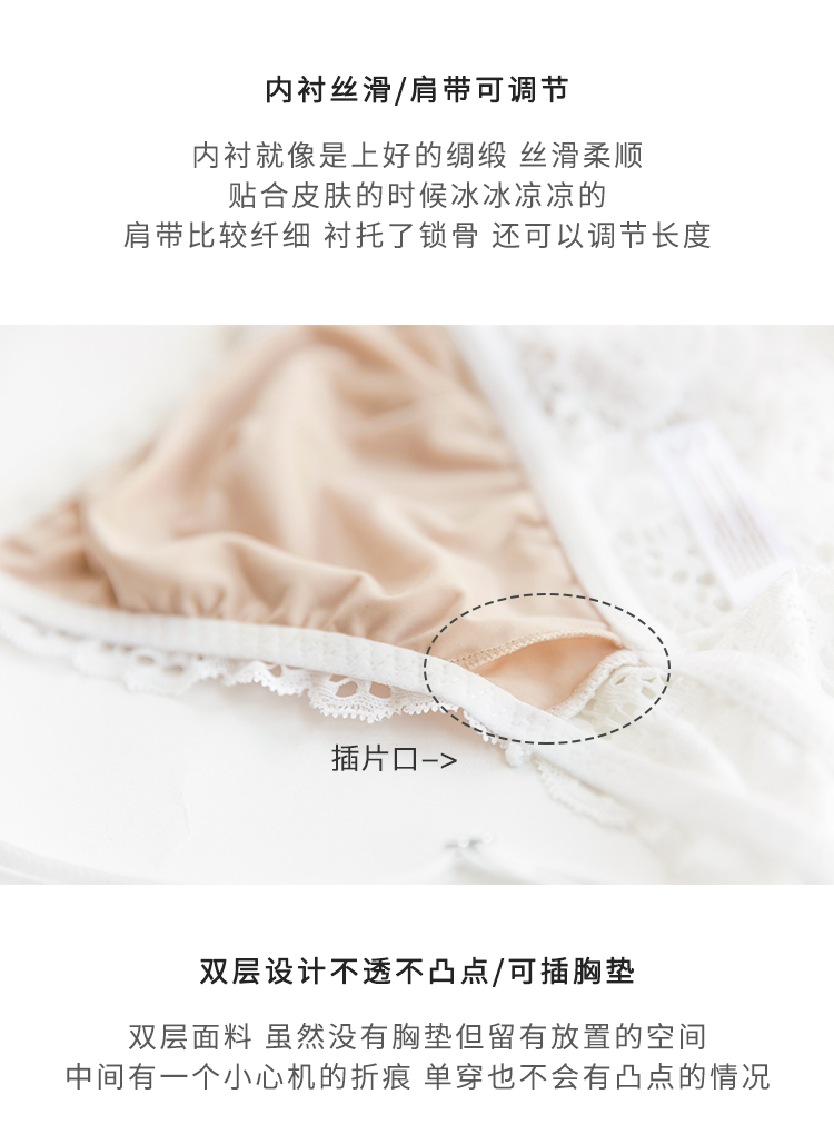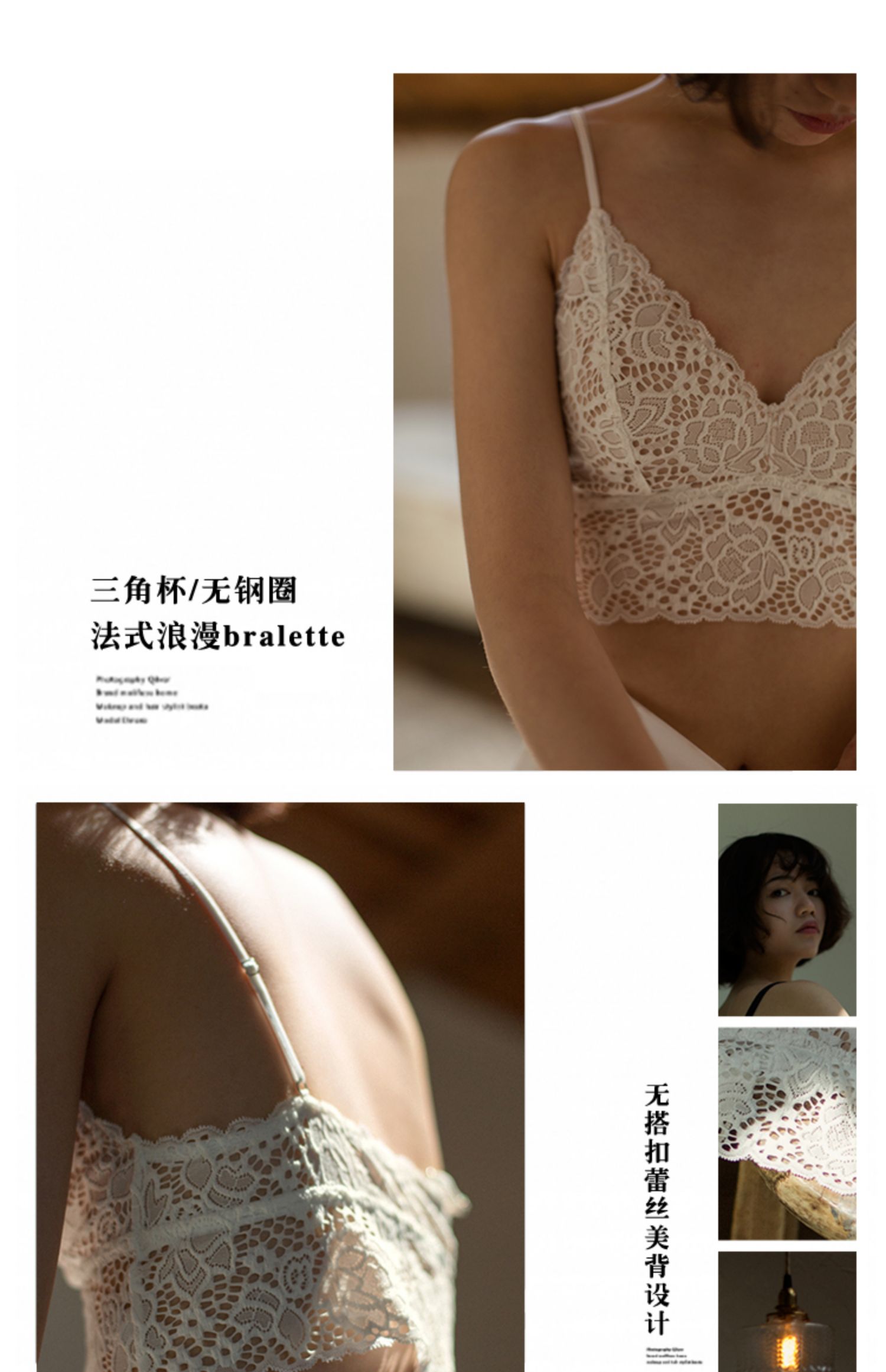 靴下物性感白色内衣超薄蕾丝文胸无钢圈法式美背吊带小胸三角杯