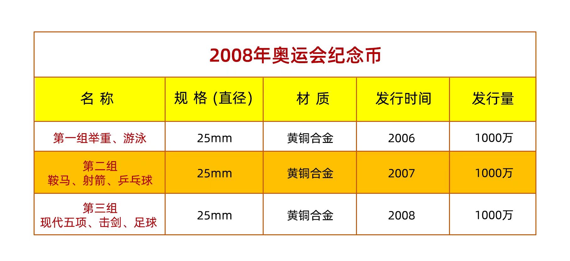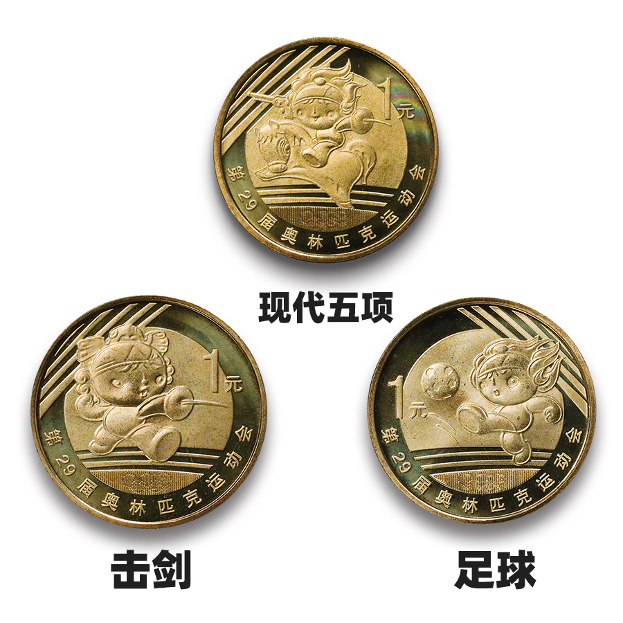 08年奥运会纪念币,共8枚,包含游泳,举重,乒乓,射箭,马鞍,现代五项,击剑,足球,全部为原卷拆封。