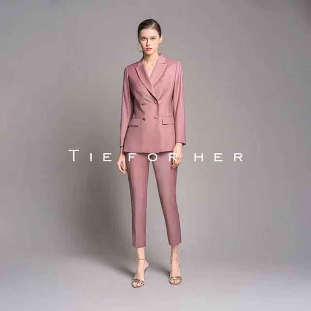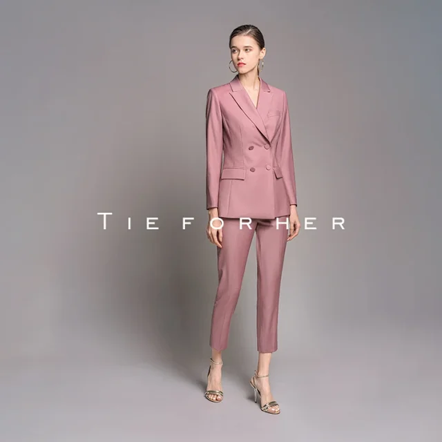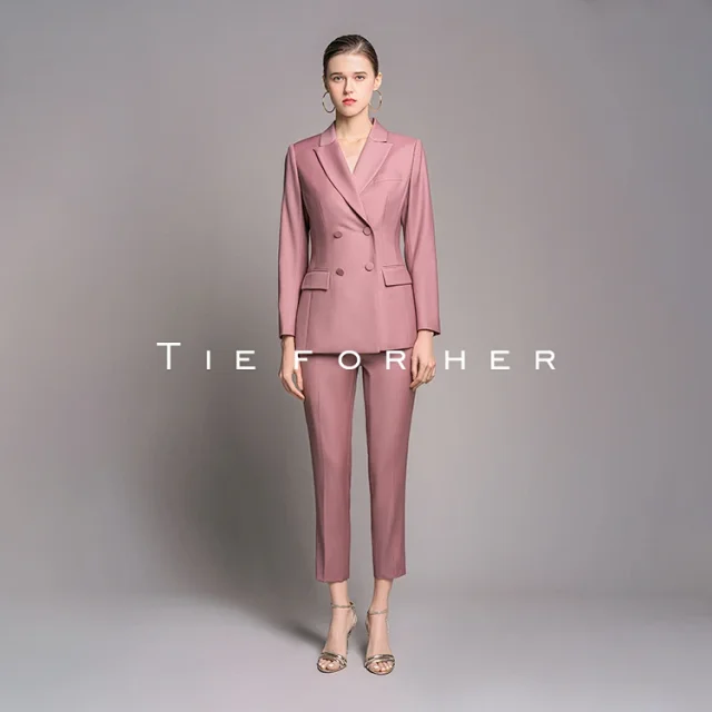 20LUX40豆沙色双排扣西装两件套