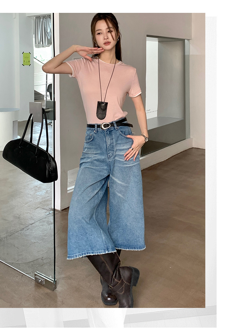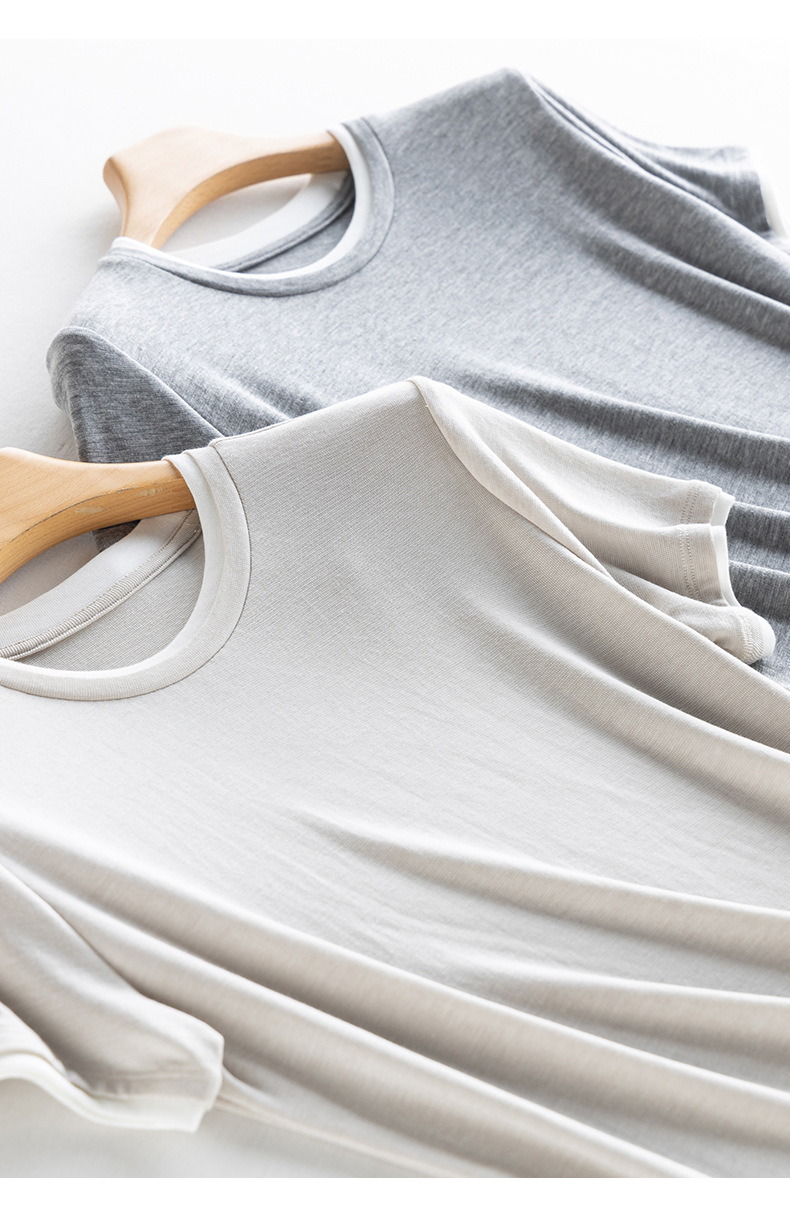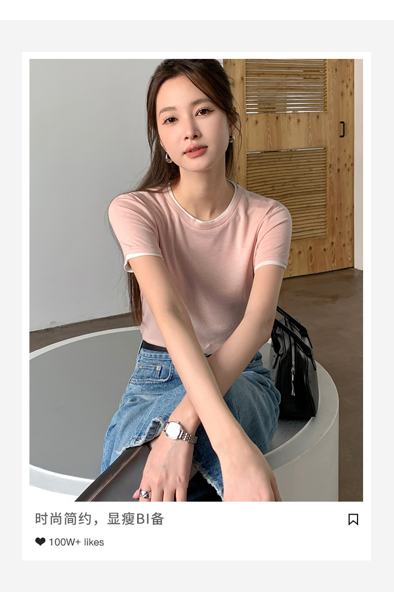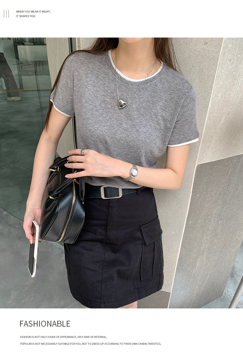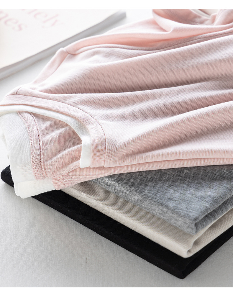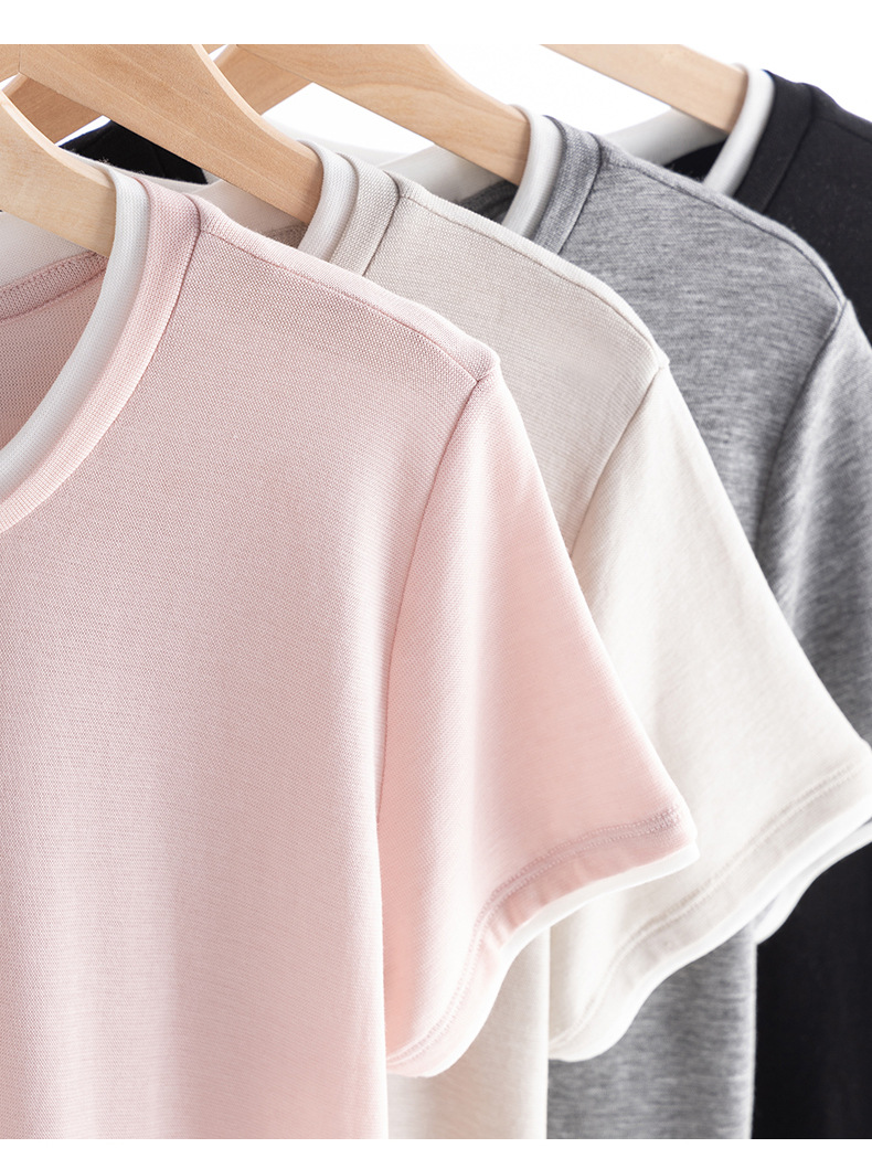 新款兰精天丝打底衫女假两件圆领短袖上衣夏季修身百搭显瘦t恤_ym