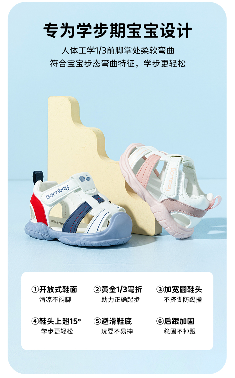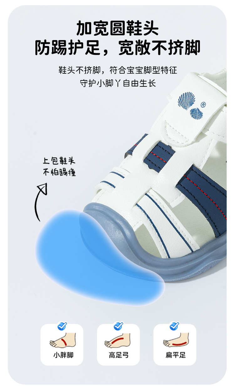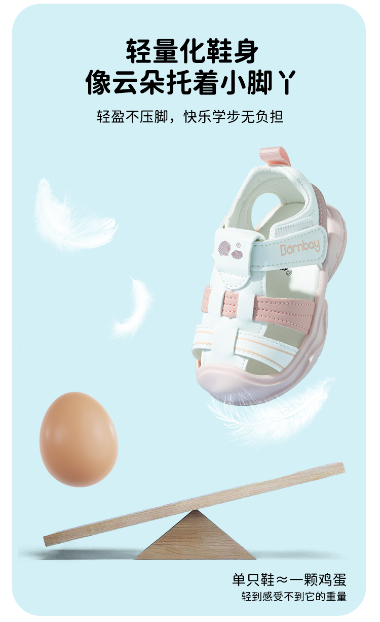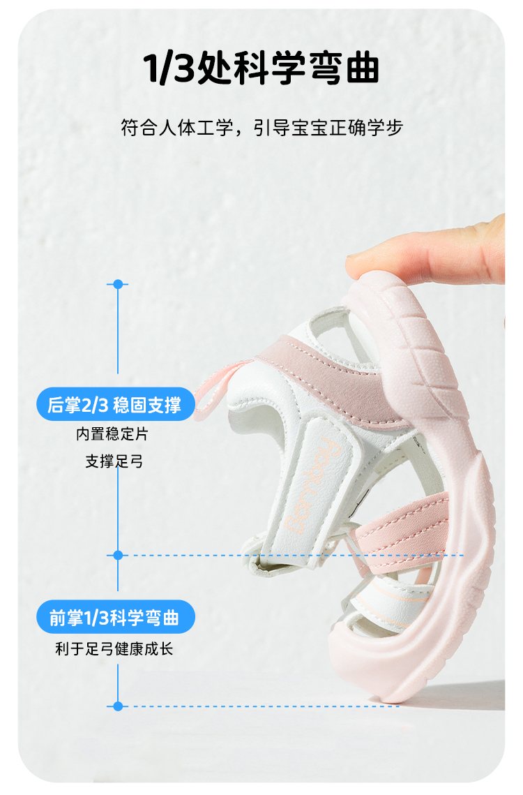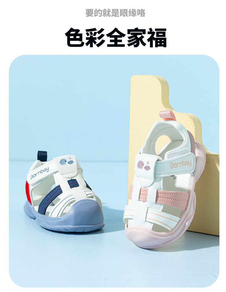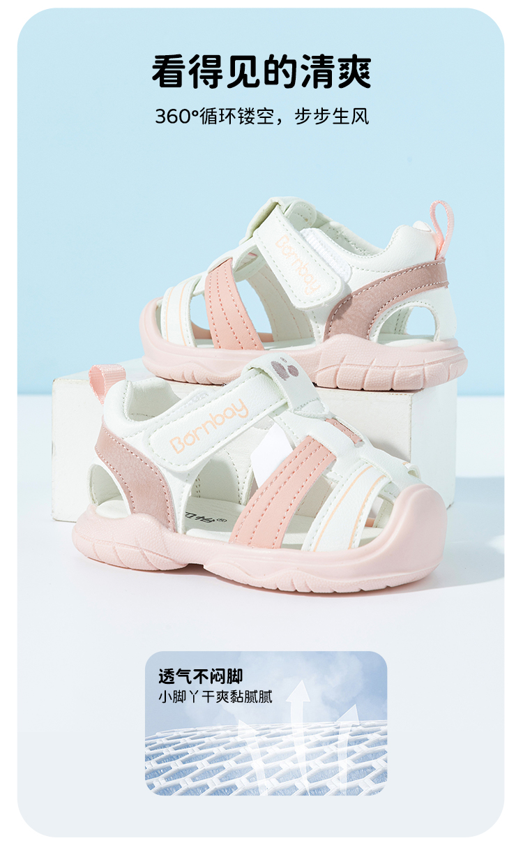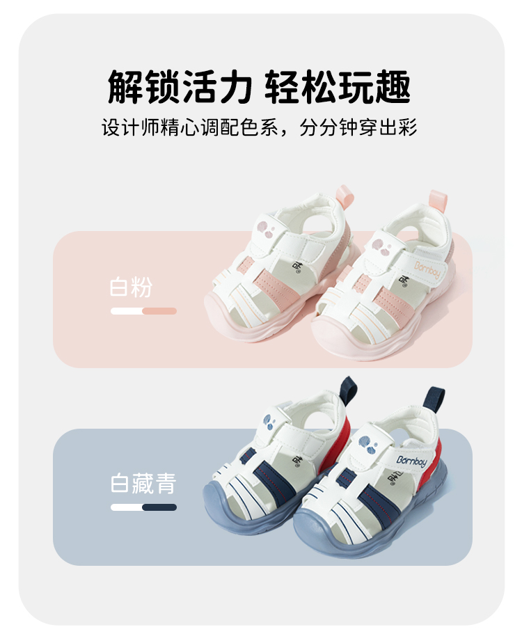 贝贝怡2025夏季新款男女童撞色凉鞋大孔透气休闲沙滩鞋儿童运动凉鞋ZB2EX016