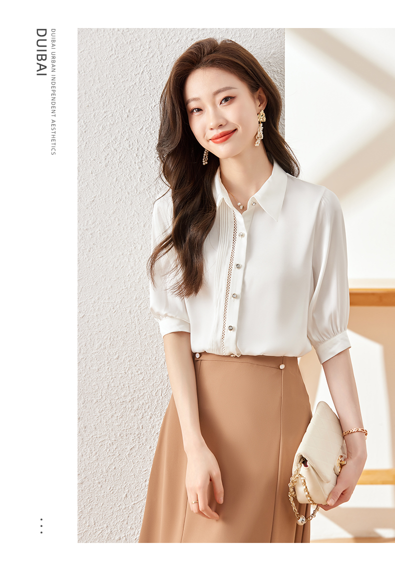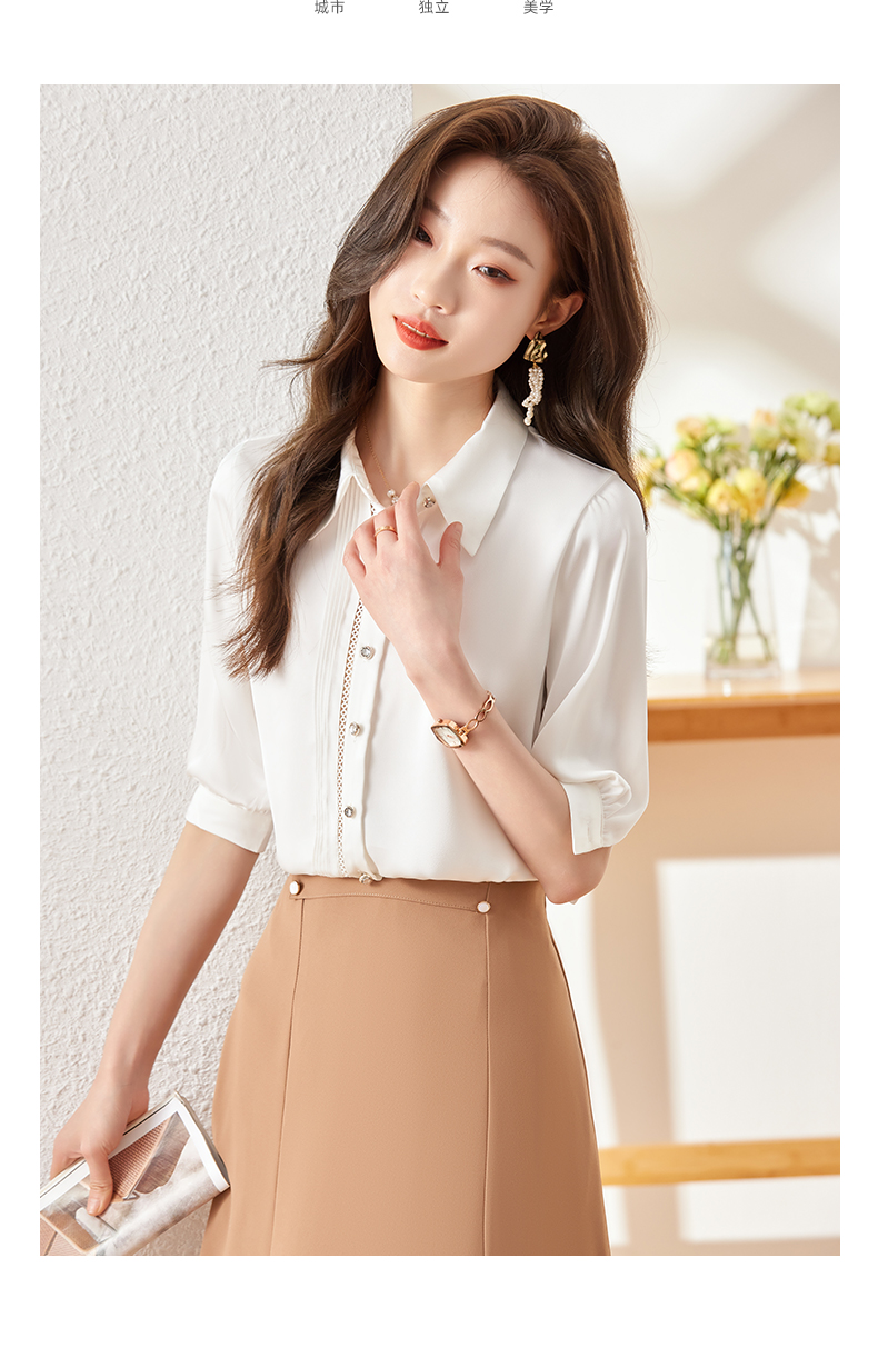 新款褶皱衣身衬衫职场时尚衬衣上衣女穿搭设计感
