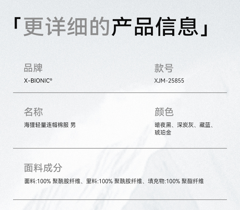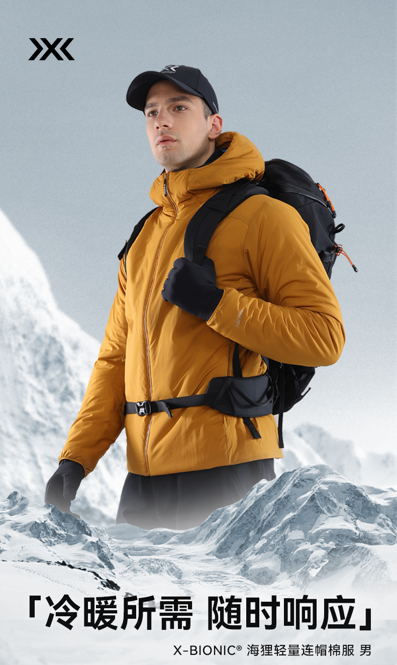 X-BIONIC 海狸轻量 连帽棉服秋冬保暖柔软轻量拒水防风潮湿保暖棉衣 XJM-25855