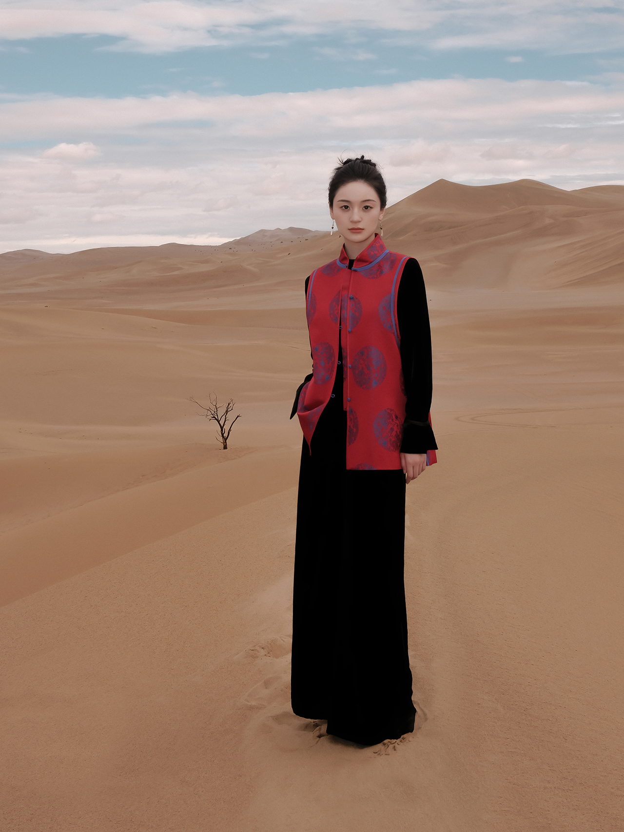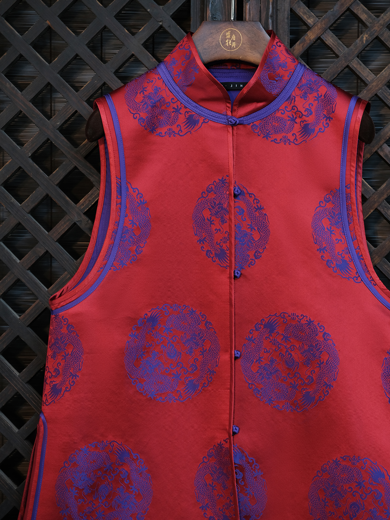 下架|盛唐婧 |中式国风库缎中长马甲-酒红