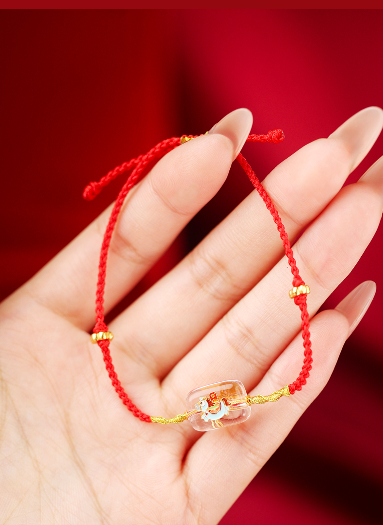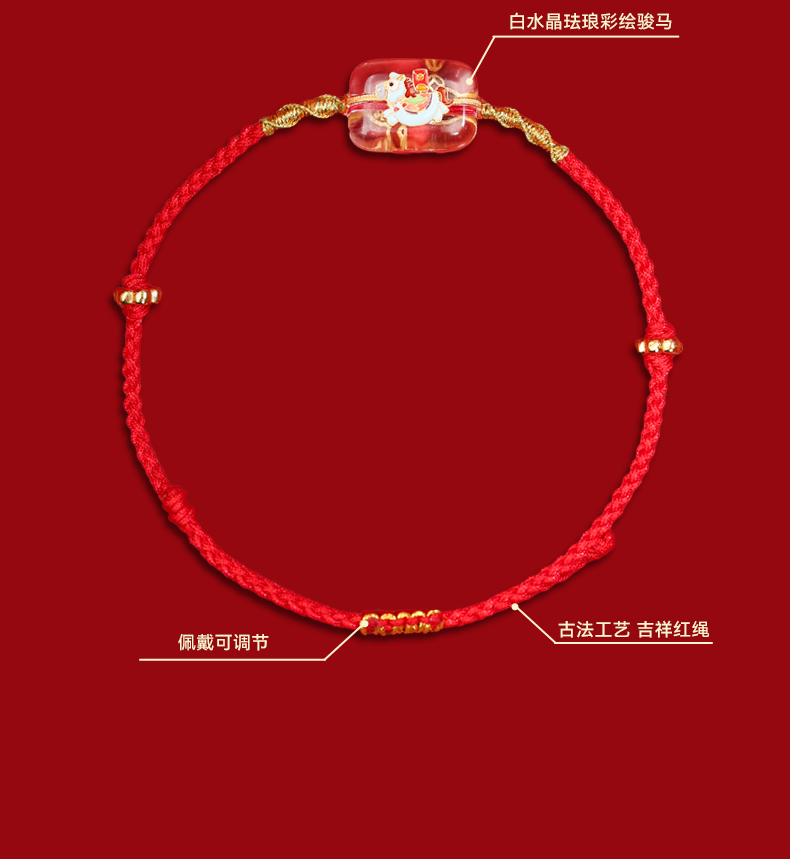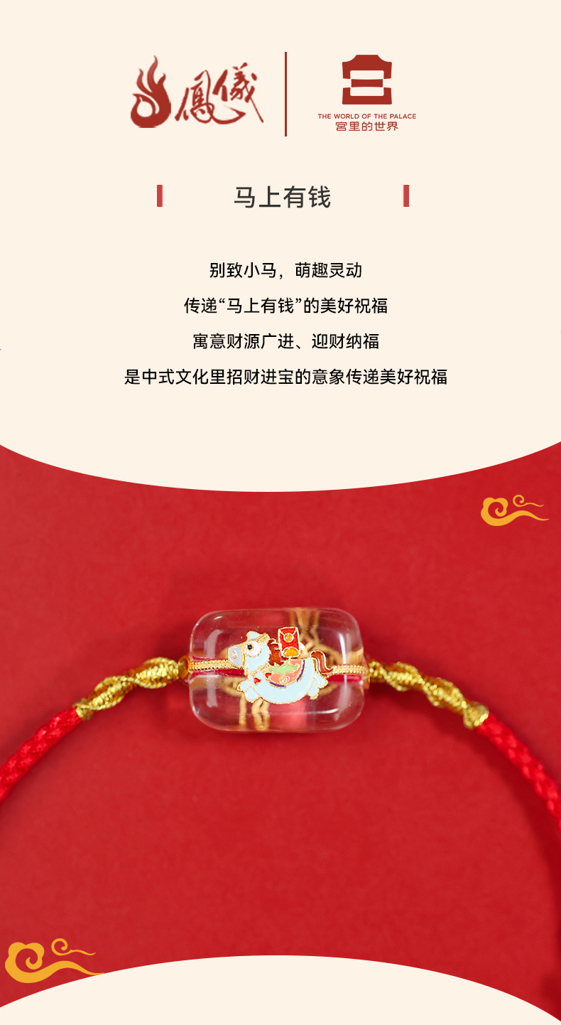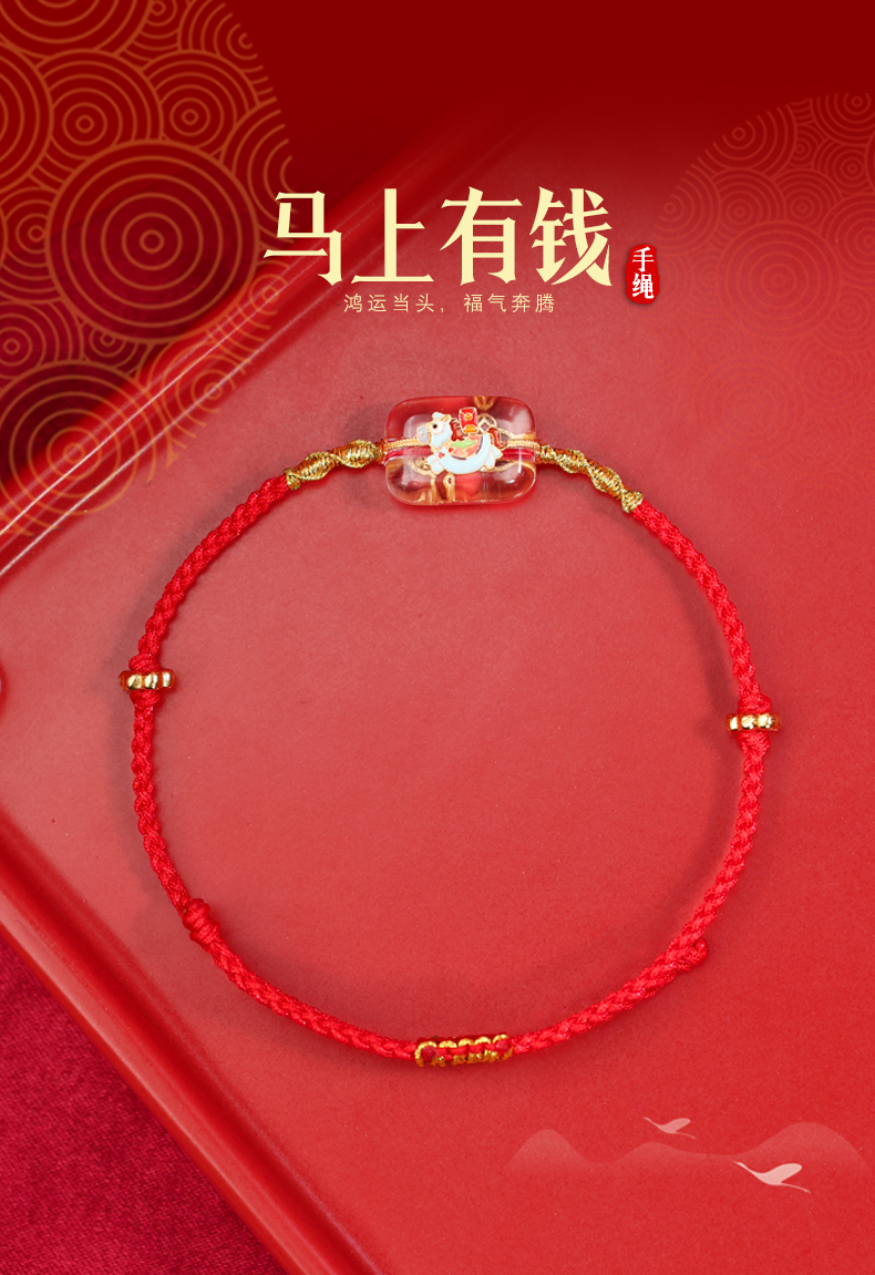 【宫里上新】马上有钱·925银珐琅彩白水晶红绳