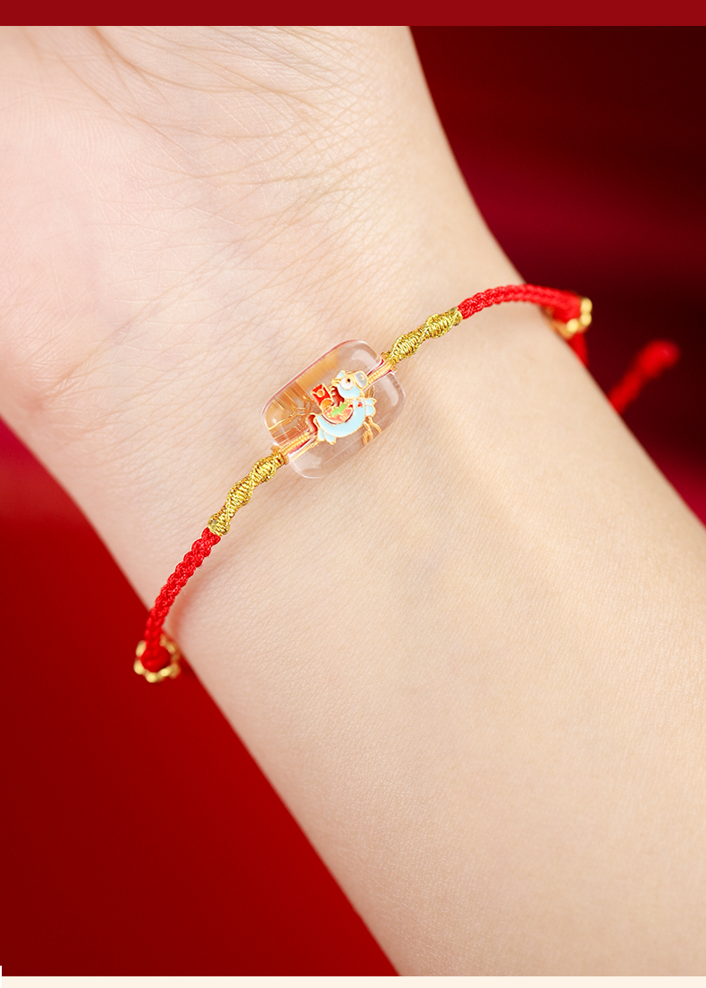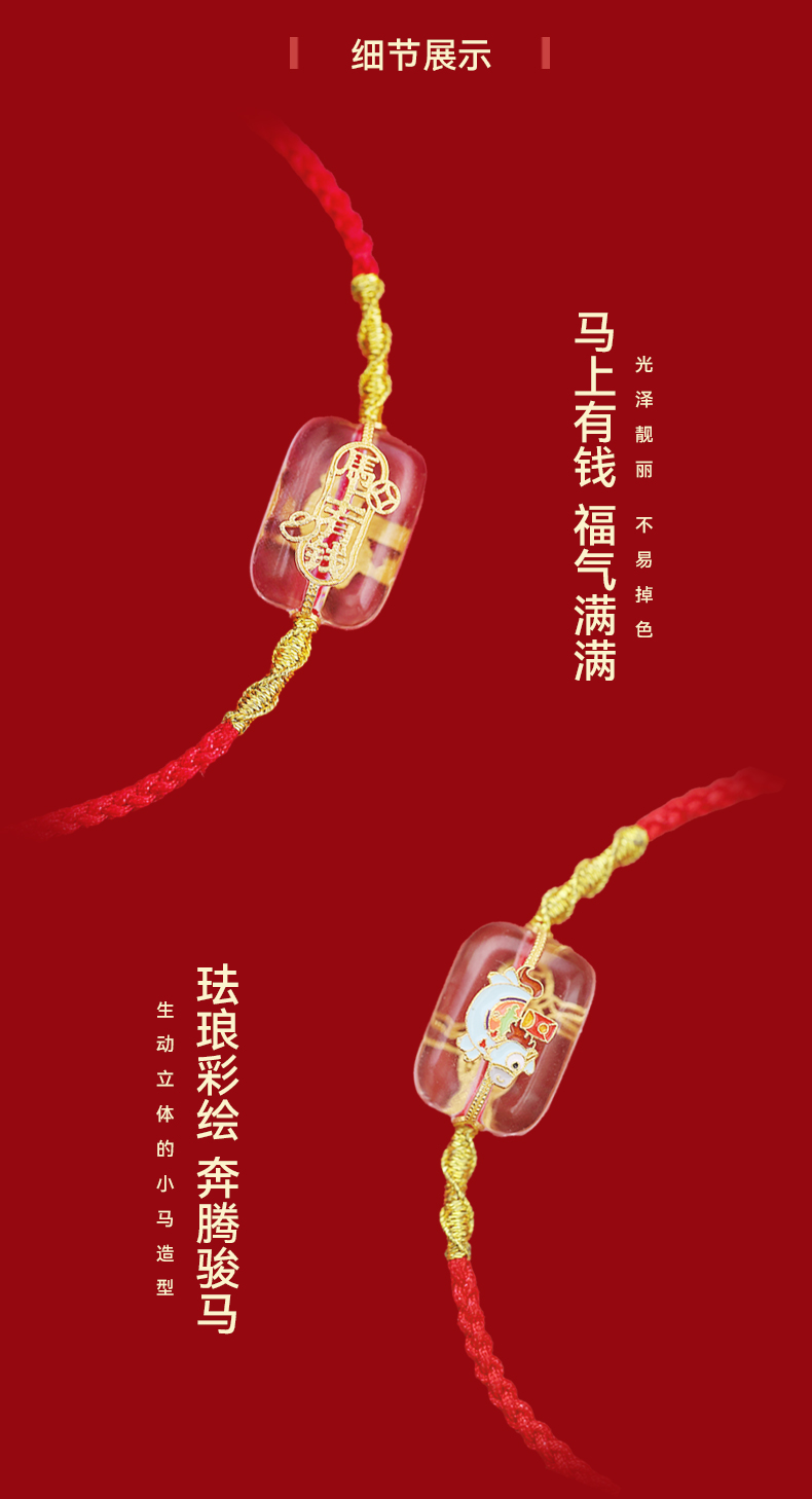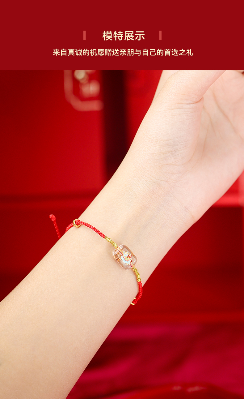 【宫里上新】马上有钱·925银珐琅彩白水晶红绳