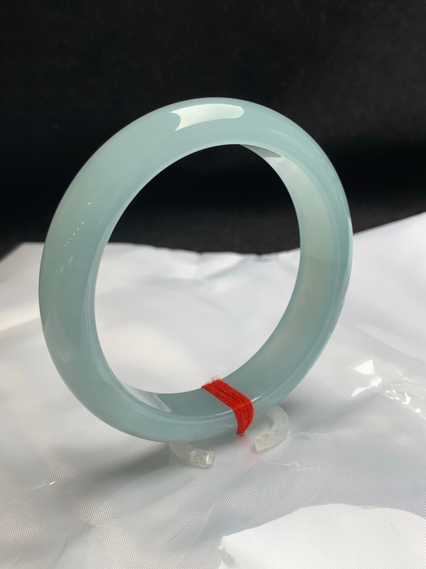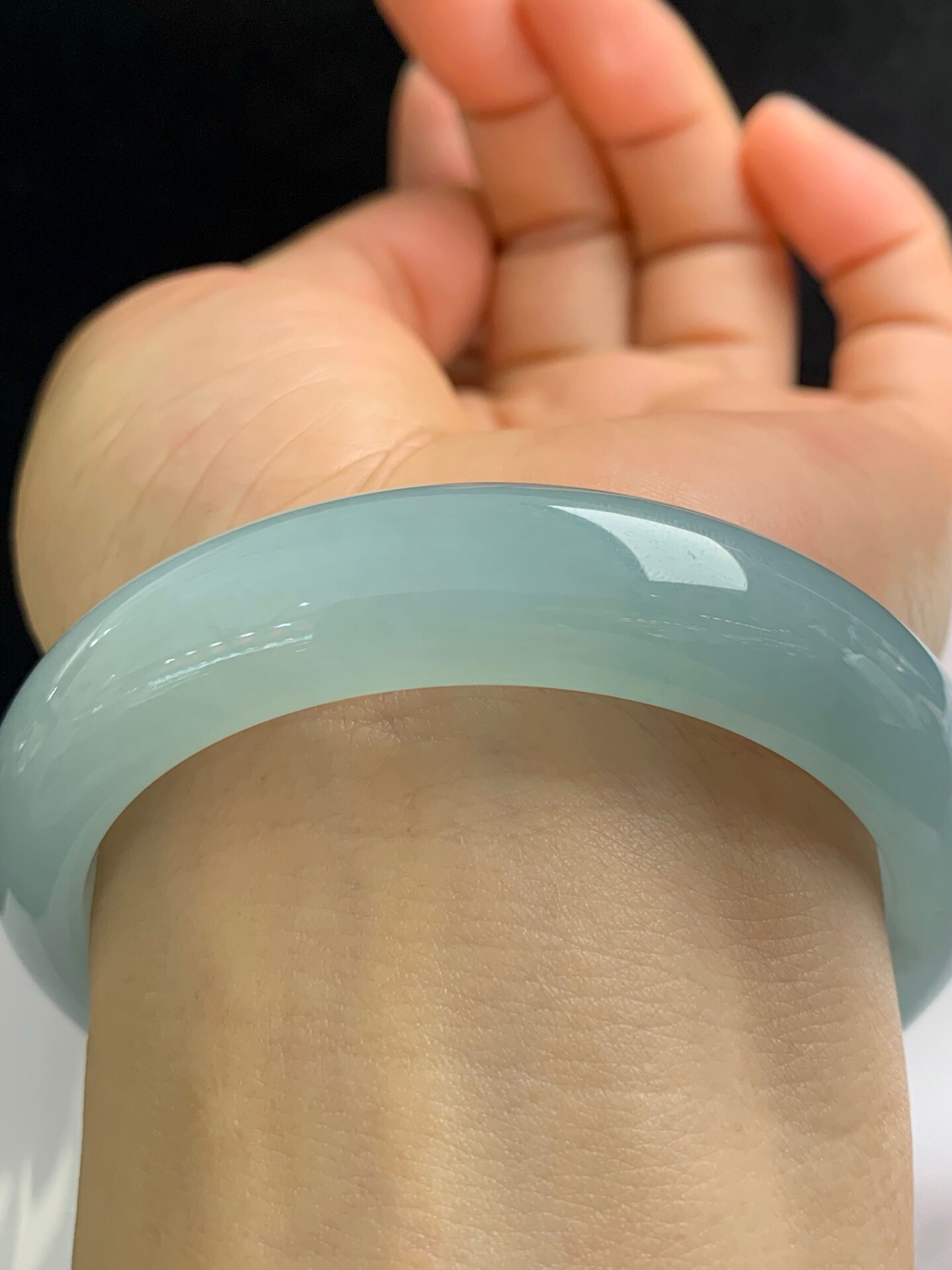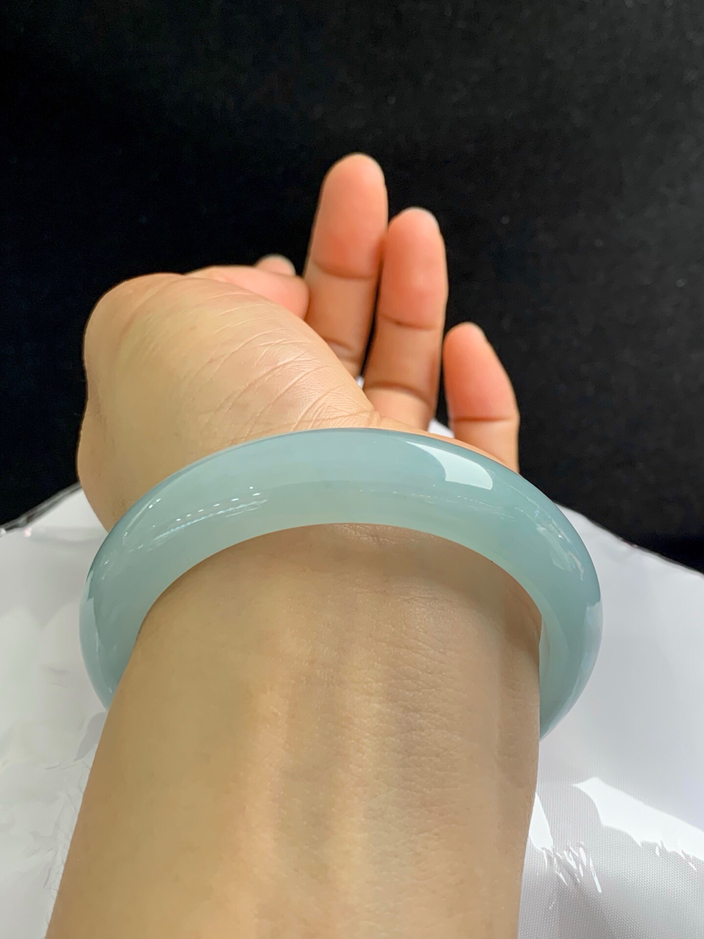 620044,57.6圈口,冰蓝正圈平安镯,蓝水料,静谧天空蓝,冰润有光感,上手有意境,完美,尺寸:57.6-13.8-8.3,超值价💰49000 #优石客珠宝#香玉荟萃