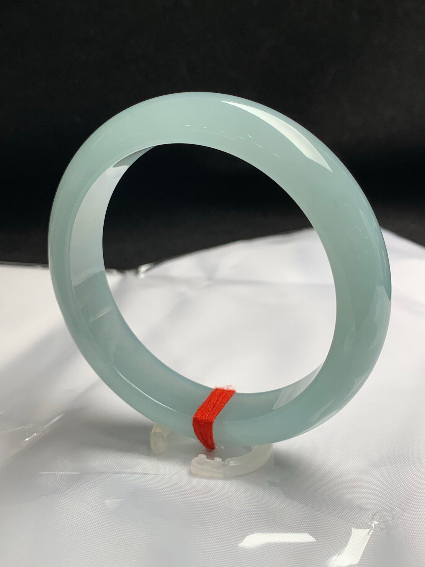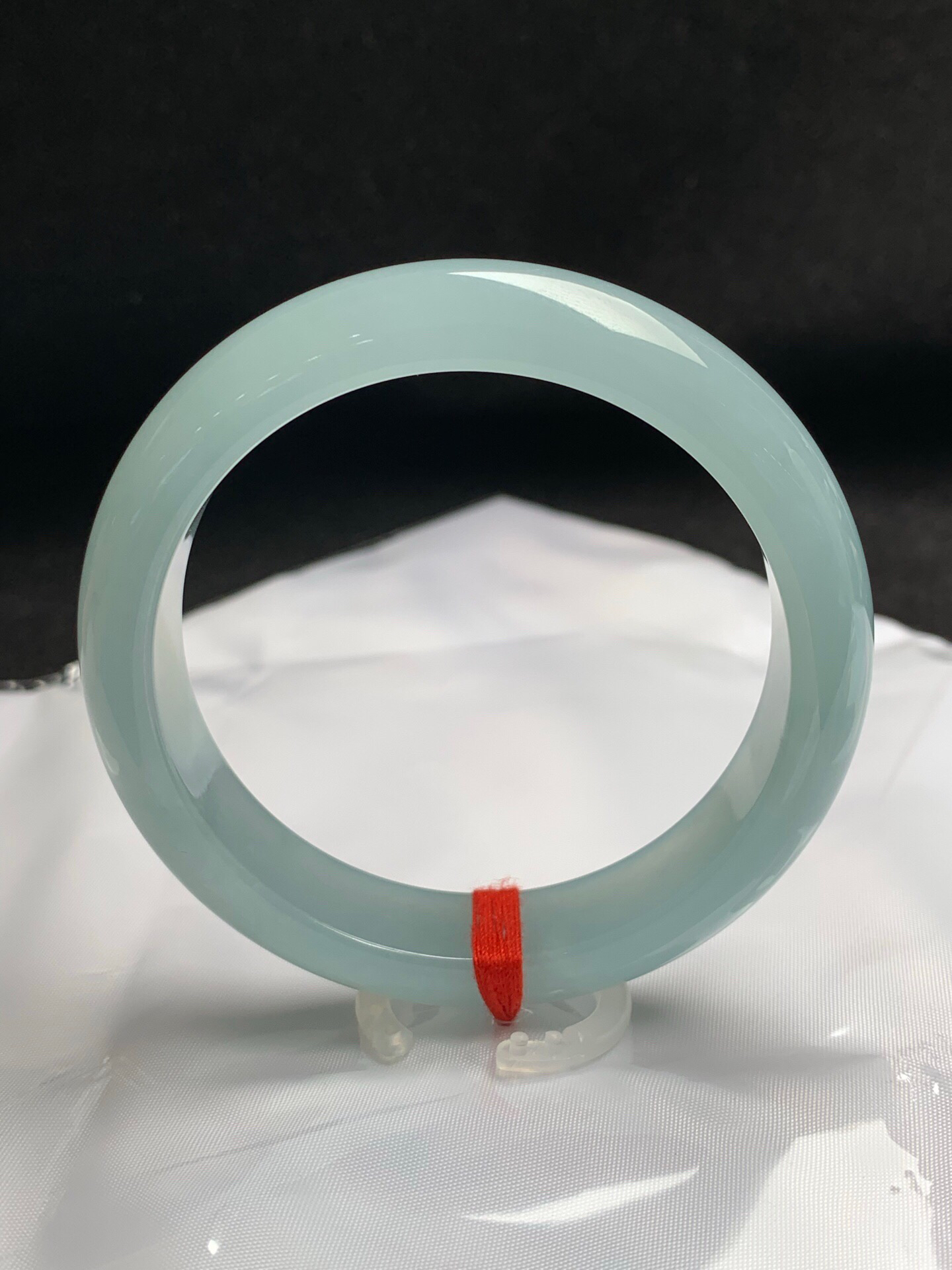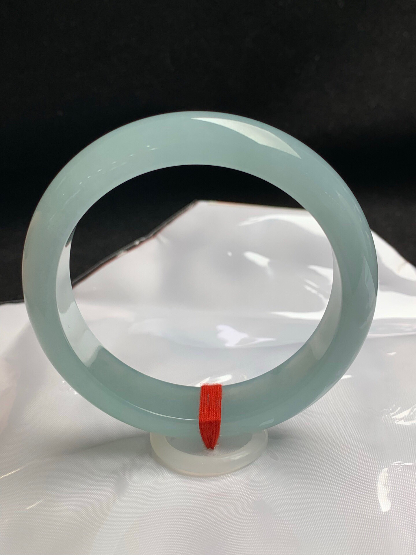 620044,57.6圈口,冰蓝正圈平安镯,蓝水料,静谧天空蓝,冰润有光感,上手有意境,完美,尺寸:57.6-13.8-8.3,超值价💰49000 #优石客珠宝#香玉荟萃