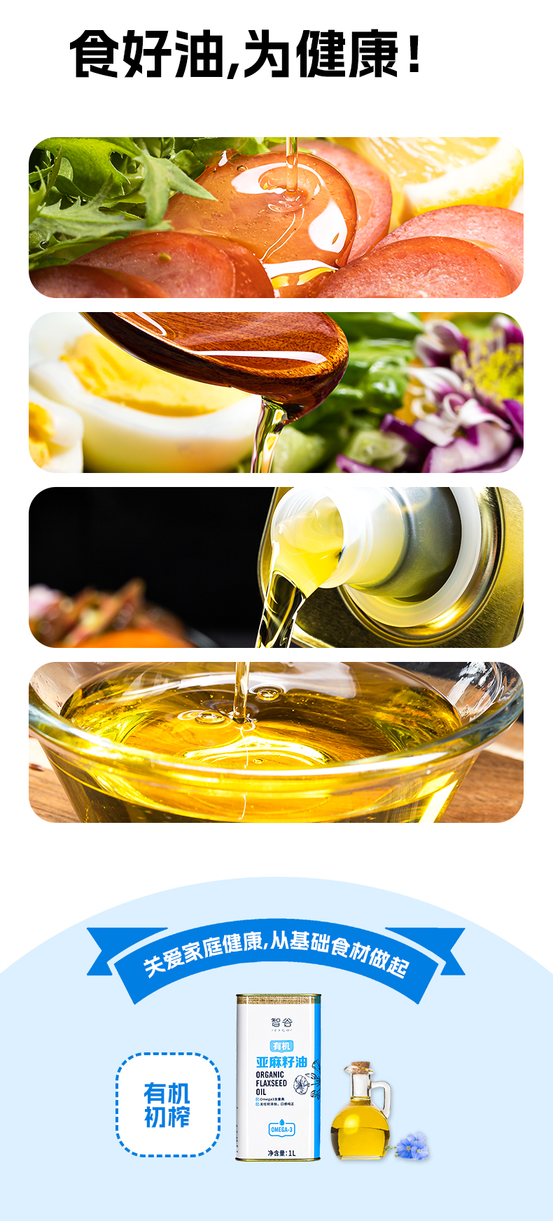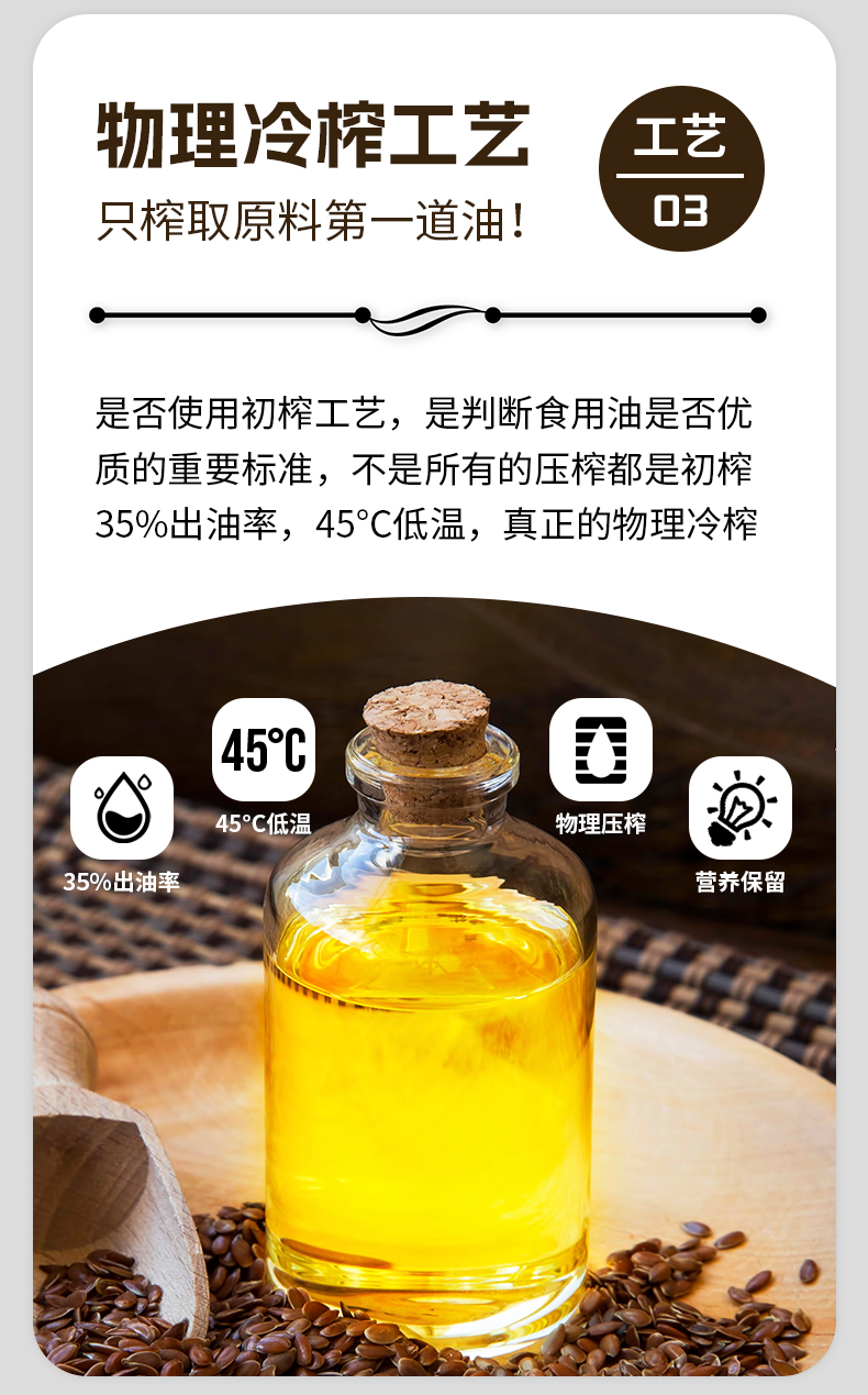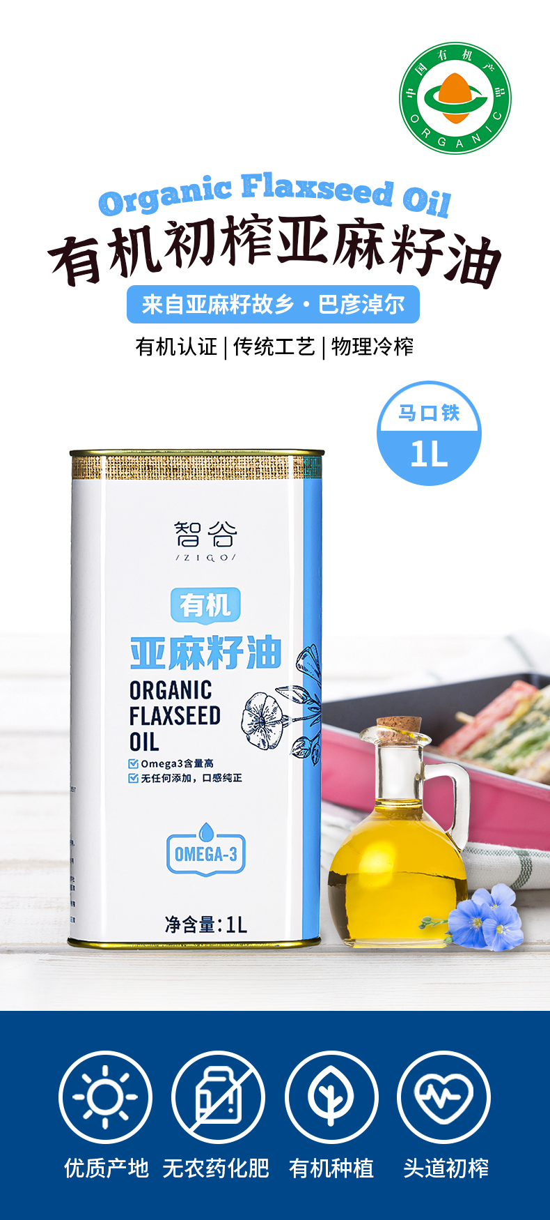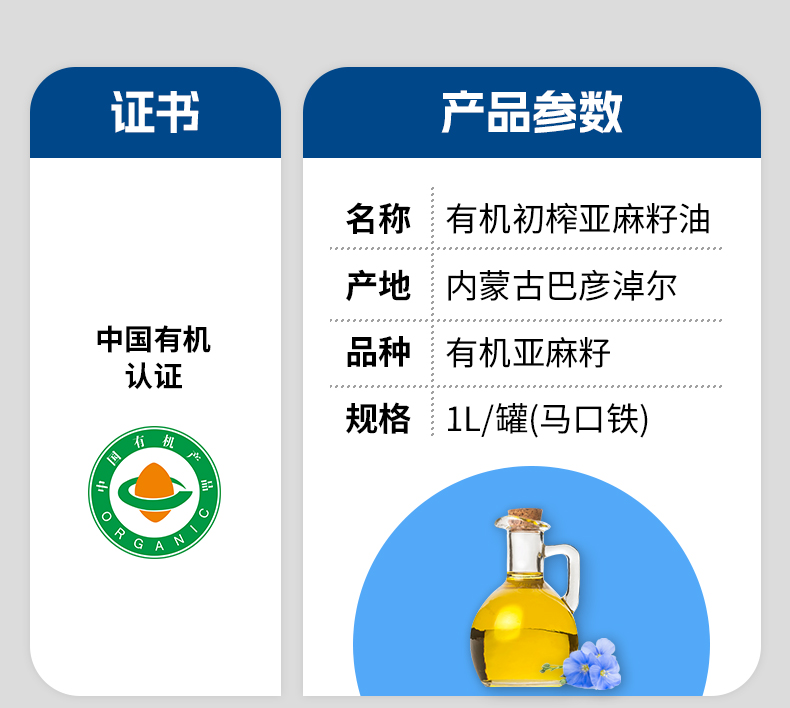 【有机亚麻籽油】1L|物理冷榨低温烹饪拌酸奶直喝健康食用油
