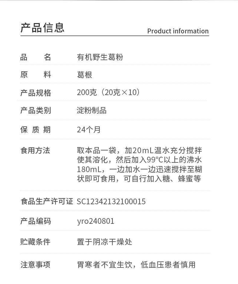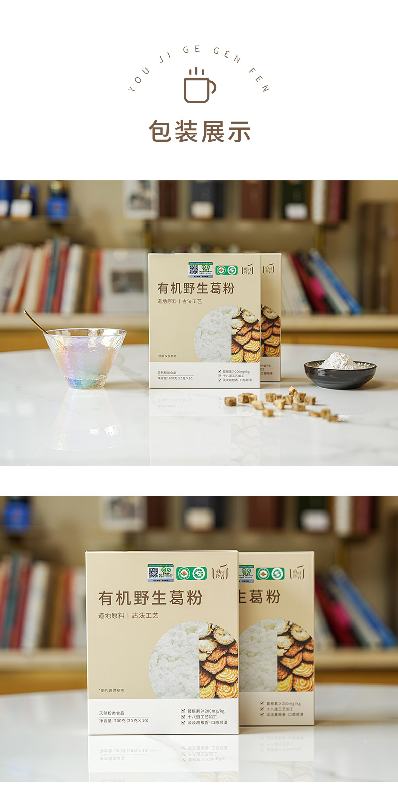 【昀蓉时光·有机野生葛粉】湖北纯正天然野生柴葛·高活性成份高·粉质细腻纯净·晶莹剔透(20g*10条/盒)