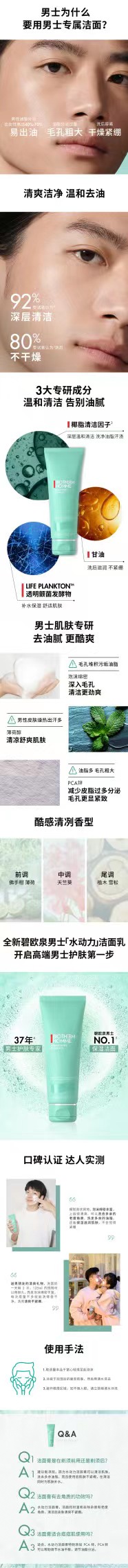 【春化节】【爆】1楼碧欧泉男士水动力洁面乳125ml+ 碧欧泉男士水动力保湿爽肤水200ml+ 碧欧泉男士水动力保湿乳75ml