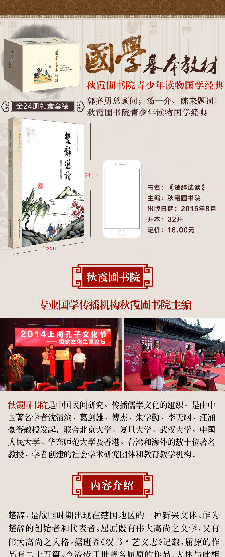 楚辞选读 国学基本教材 秋霞圃书院 青少年读物国学经典