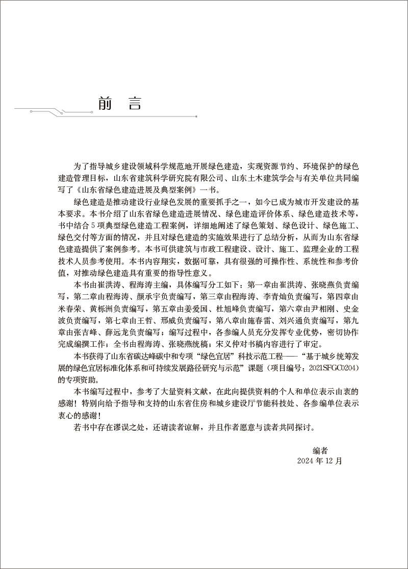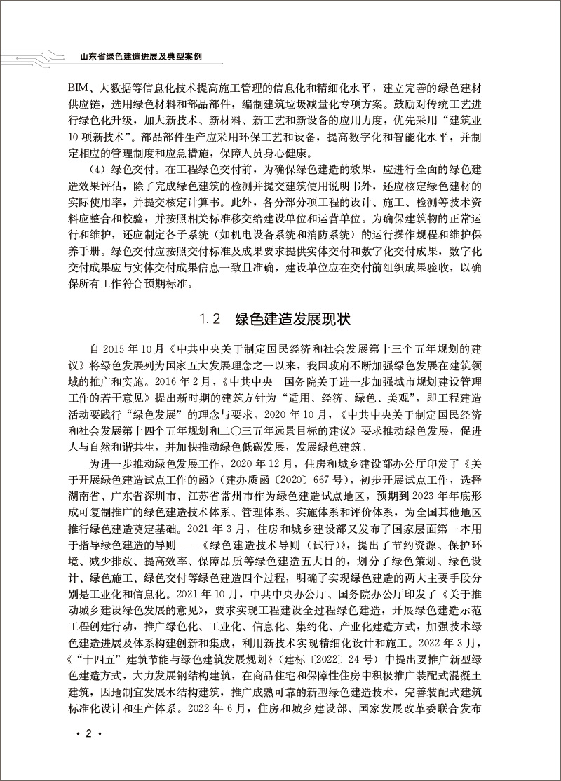 绿色施工、绿色交付等方面的情况,并且对绿色建造的实施效果进行了总结分析,从而为山东省绿色建造提供了案例参考。本书可供建筑与市政工程建设、