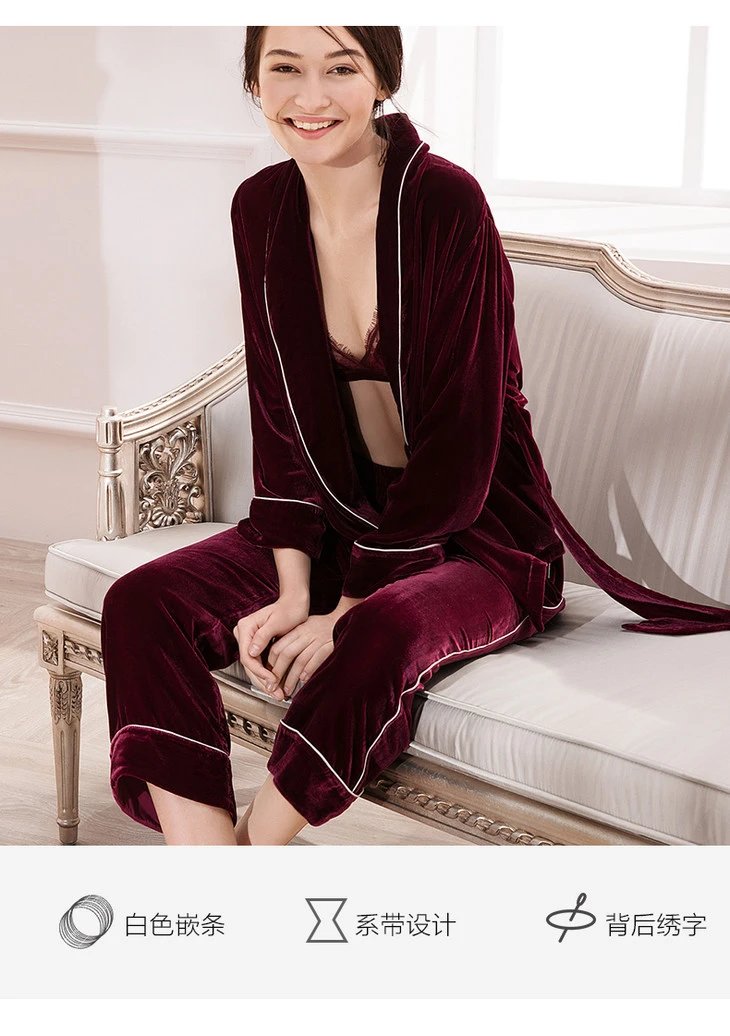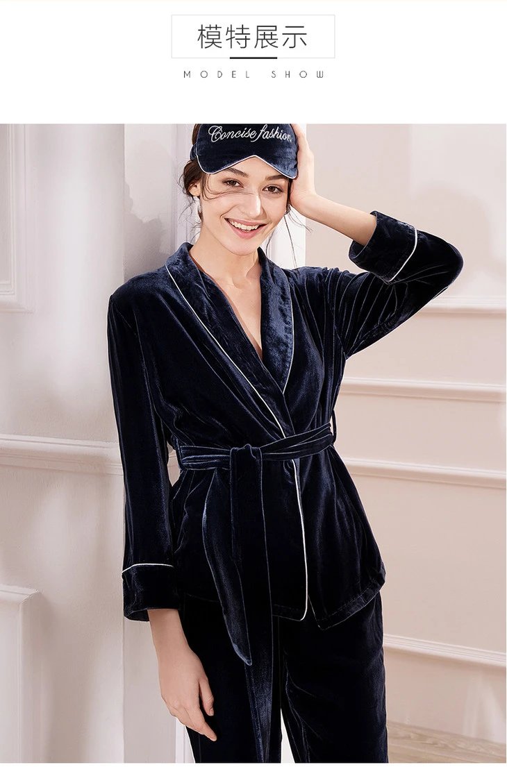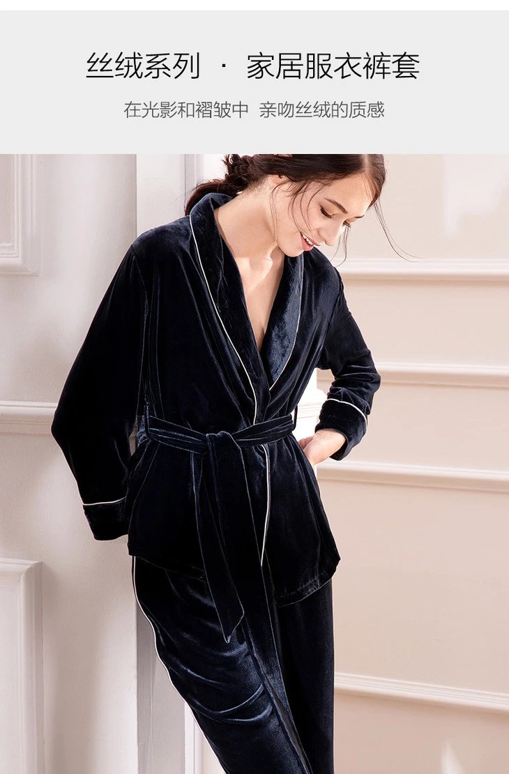 金三塔秋冬上新丝绒保暖衣裤套女长袖长裤加厚衣裤套家居服YSF8D202