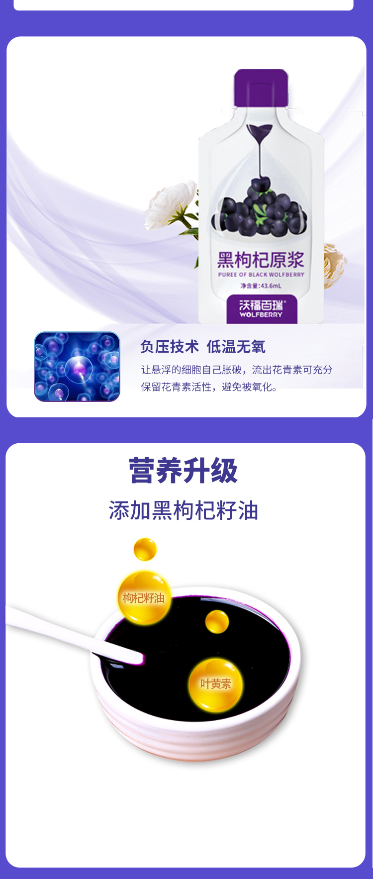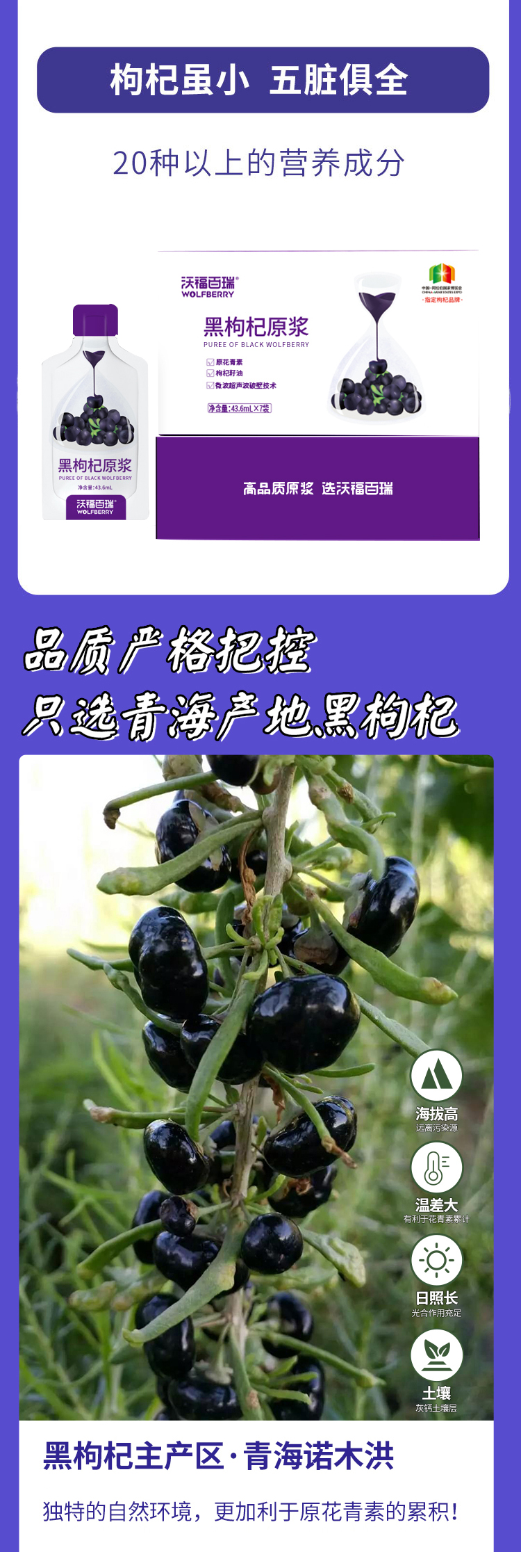 沃福百瑞黑枸杞原浆青海黑枸杞原液43.6ml*7