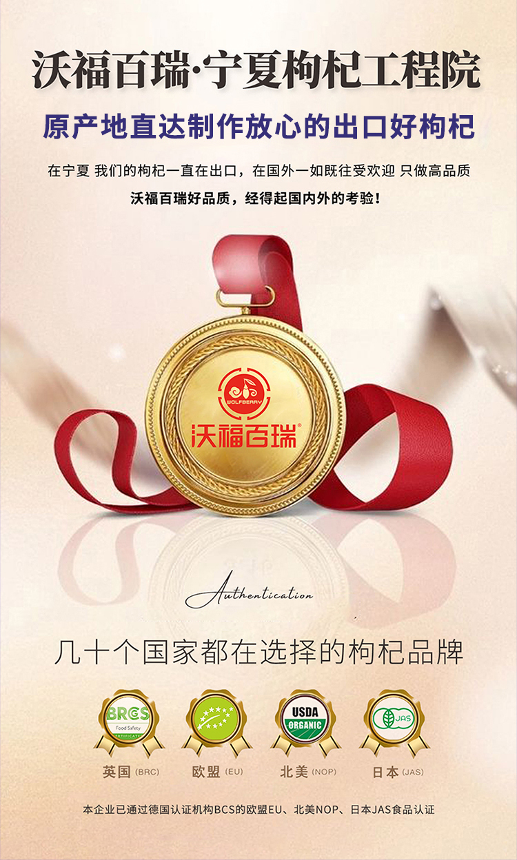 - 宁夏沃福百瑞是有机枸杞生产专家,枸杞养生专家。国际品牌枸杞产品的缔造者。