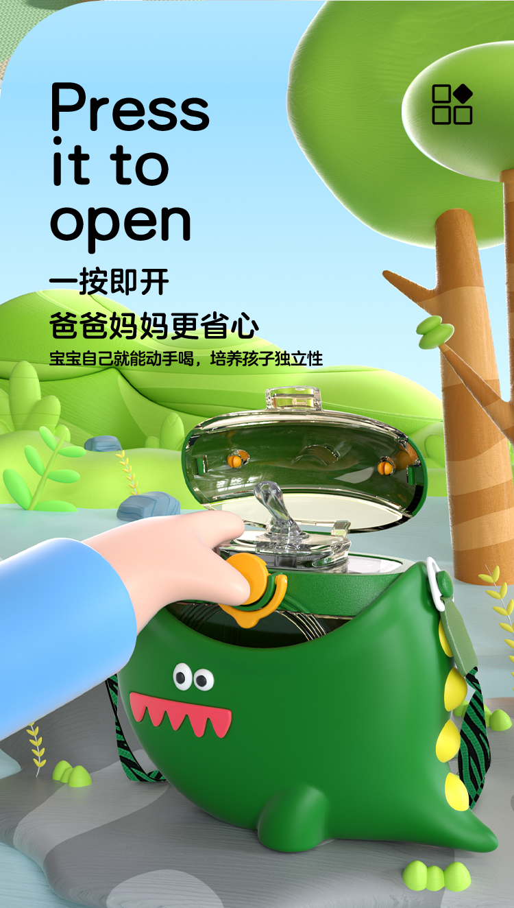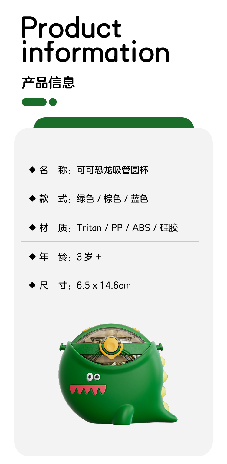 【6F】多样屋 Cocosmile 恐龙圆杯水杯学生防摔便携水壶食品级高颜值夏季喝水