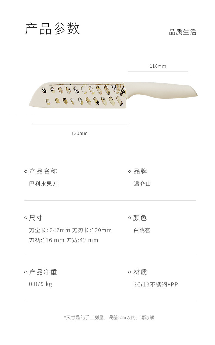 🔺配合人体工学设计,握感舒适省力的水果刀